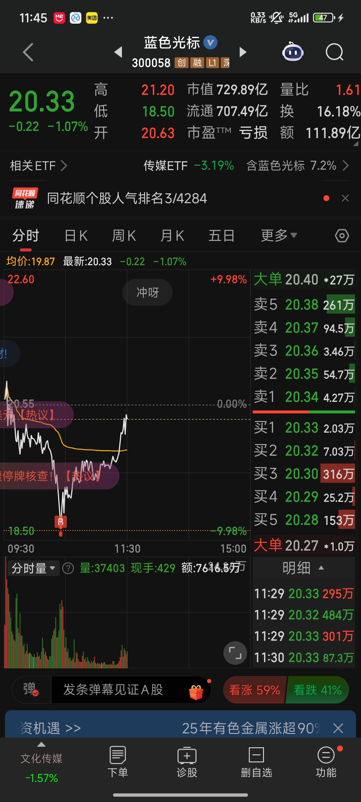 $蓝色光标(SZ300058)$ 抄底成功