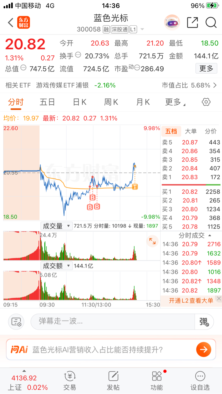 $蓝色光标(SZ300058)$ 今天这个操作我不是很满意,主要是没时间盯盘,但是总归是等到了黎明