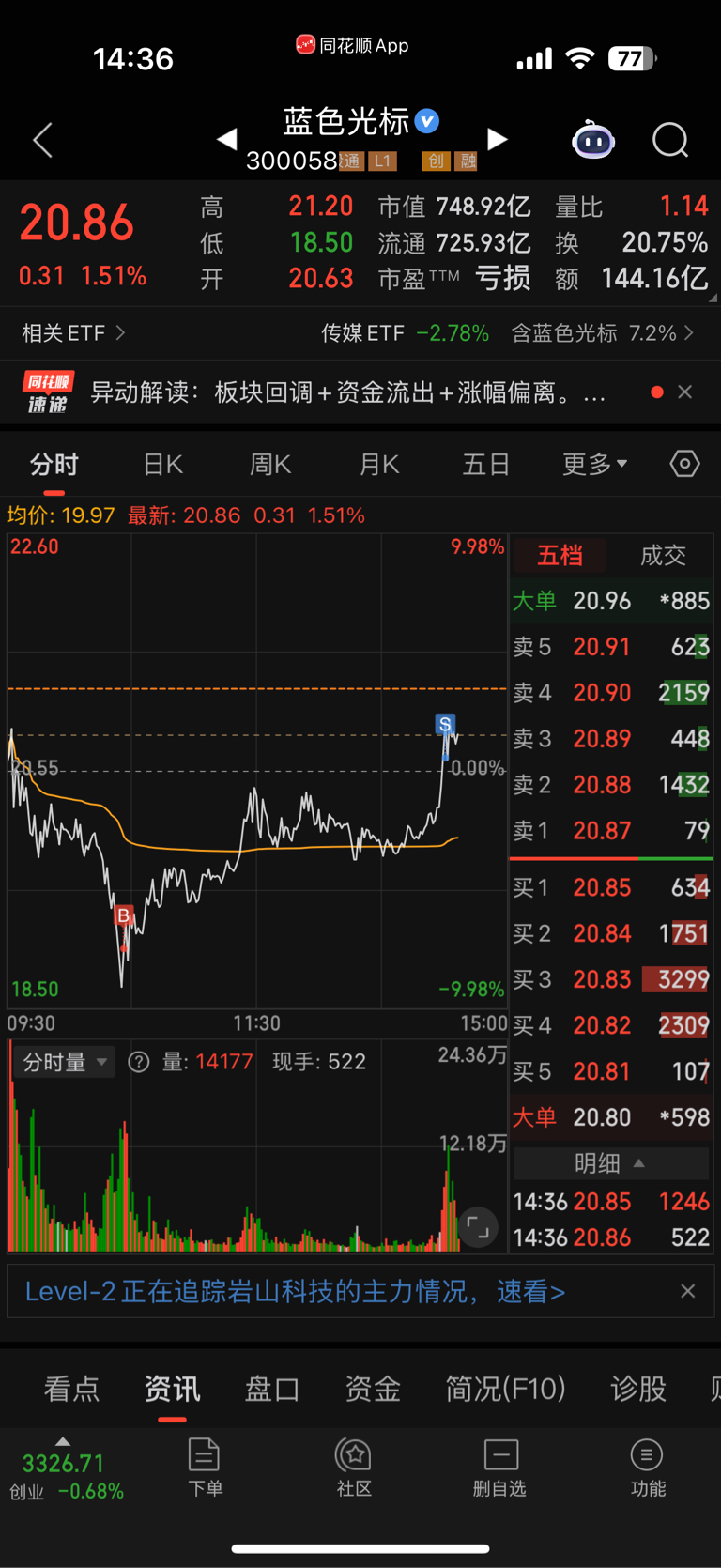 $蓝色光标(SZ300058)$ 今天T了一下