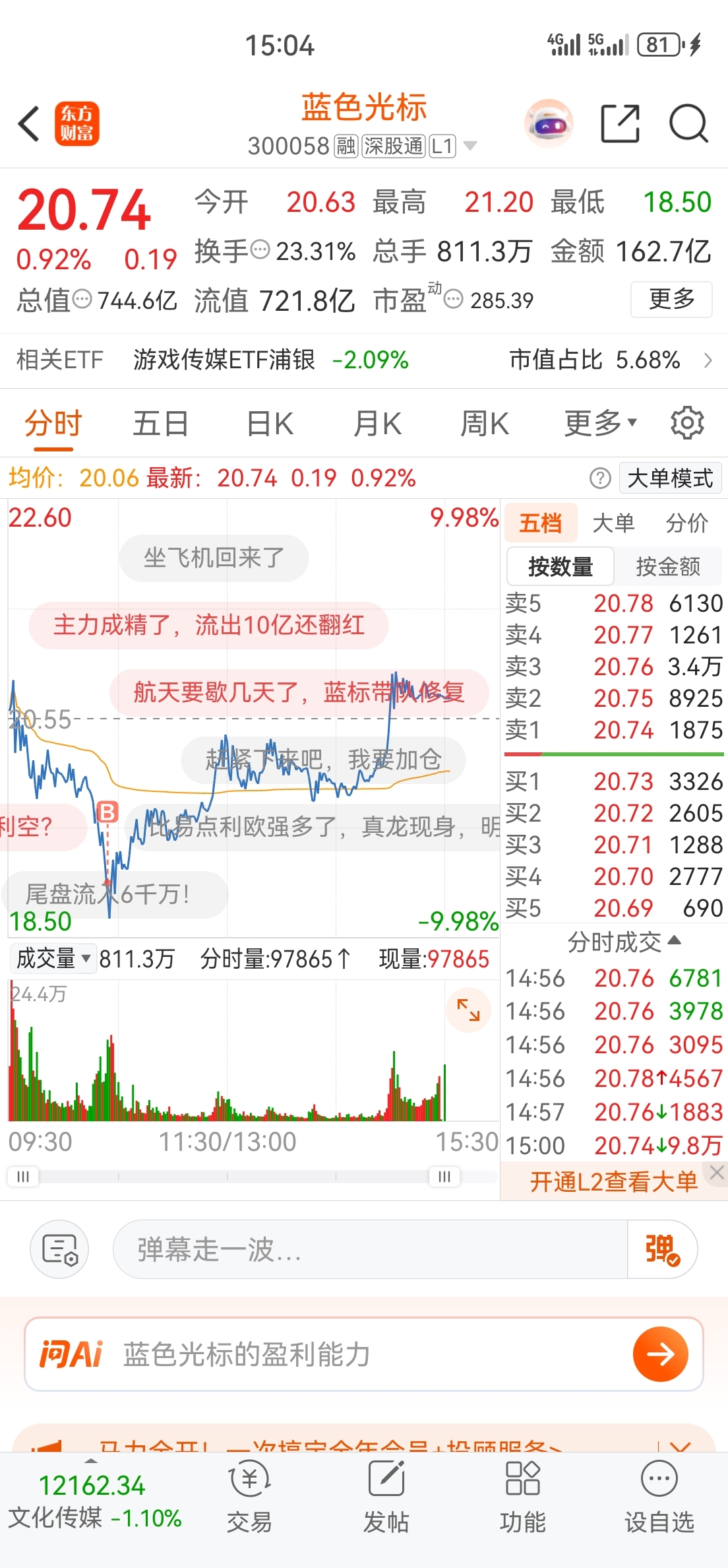 $蓝色光标(SZ300058)$ 龙头股胆子要大