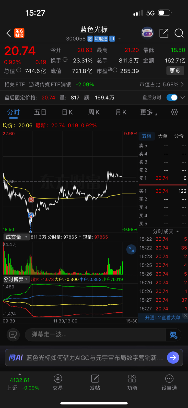 $蓝色光标(SZ300058)$ 手贱就是这样子,红的都是亏钱的