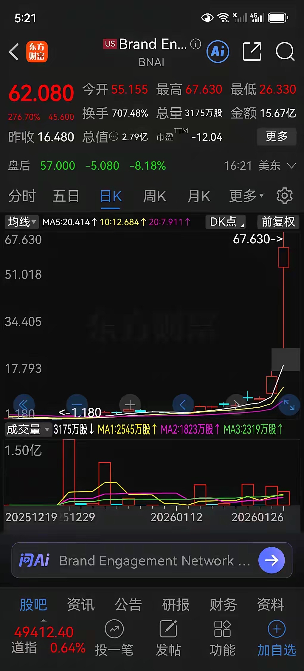 $蓝色光标(SZ300058)$ 昨夜美股传来大消息,AI应用BNAI一夜又暴涨276%,两天累计涨幅800%了。从历史上多次热传导效应看大A这个方向要起大浪了