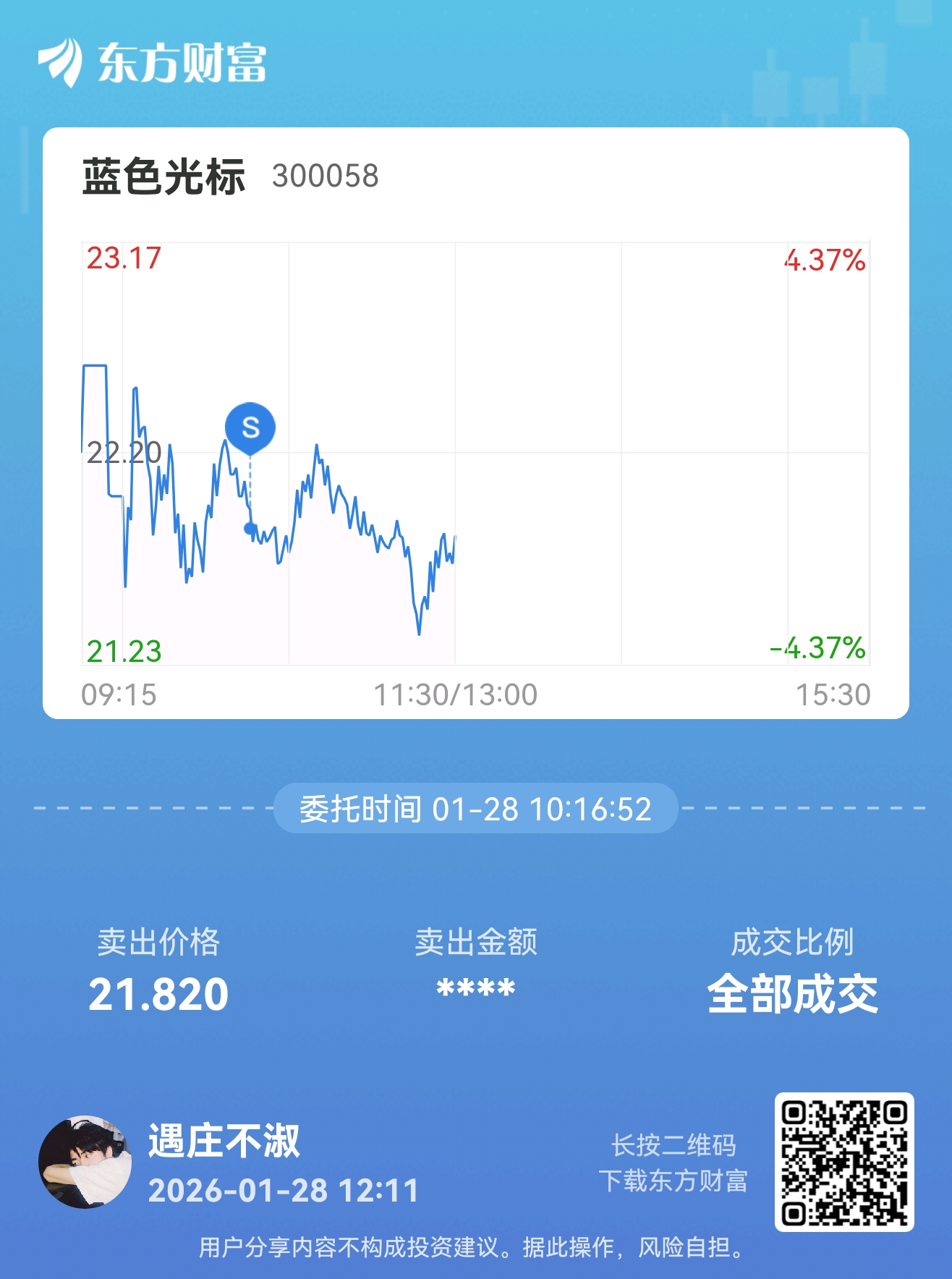 $蓝色光标(SZ300058)$ 最低点卖掉了,不排除下午放量暴涨的可能,我也懒得看了,今天上午量能有点跟不上,一直打压着在,明里暗里都不乐观,这种情况要格外谨慎,我是15入的,17左右回调时大量加仓,我拿不住,利欧我也在两个点左右出了,最近不做科技了,留下的兄弟发财#复盘记录#