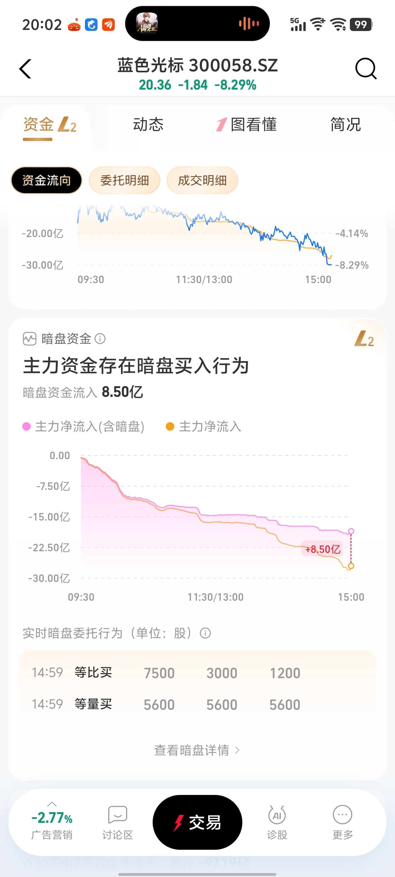 $蓝色光标(SZ300058)$ 暗盘买这么多,明天是不是要砸盘了?