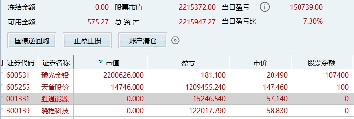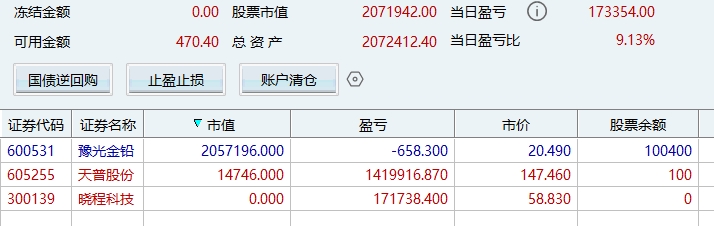 操盘的所有的账户全部满仓进了600531,白银黄金大涨最受益标的之一,是补涨龙头,白银收入一年一百多亿,在所有的上市公司里面排名第一位,目前250亿市值,20.5元价格,再次翻倍不是不可能,可以对标同板块的002716(目前500亿市值)和601212(目前快千亿市值)。这也是我今天清掉其它票全部满仓它的原因,上次所有的账户满仓的605255我翻倍出来了,看看这次能否继续创造奇迹和辉煌。