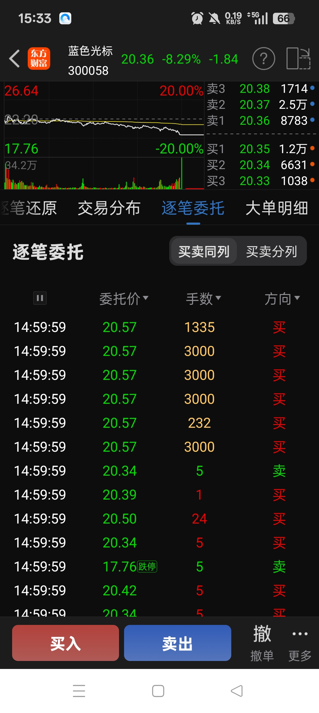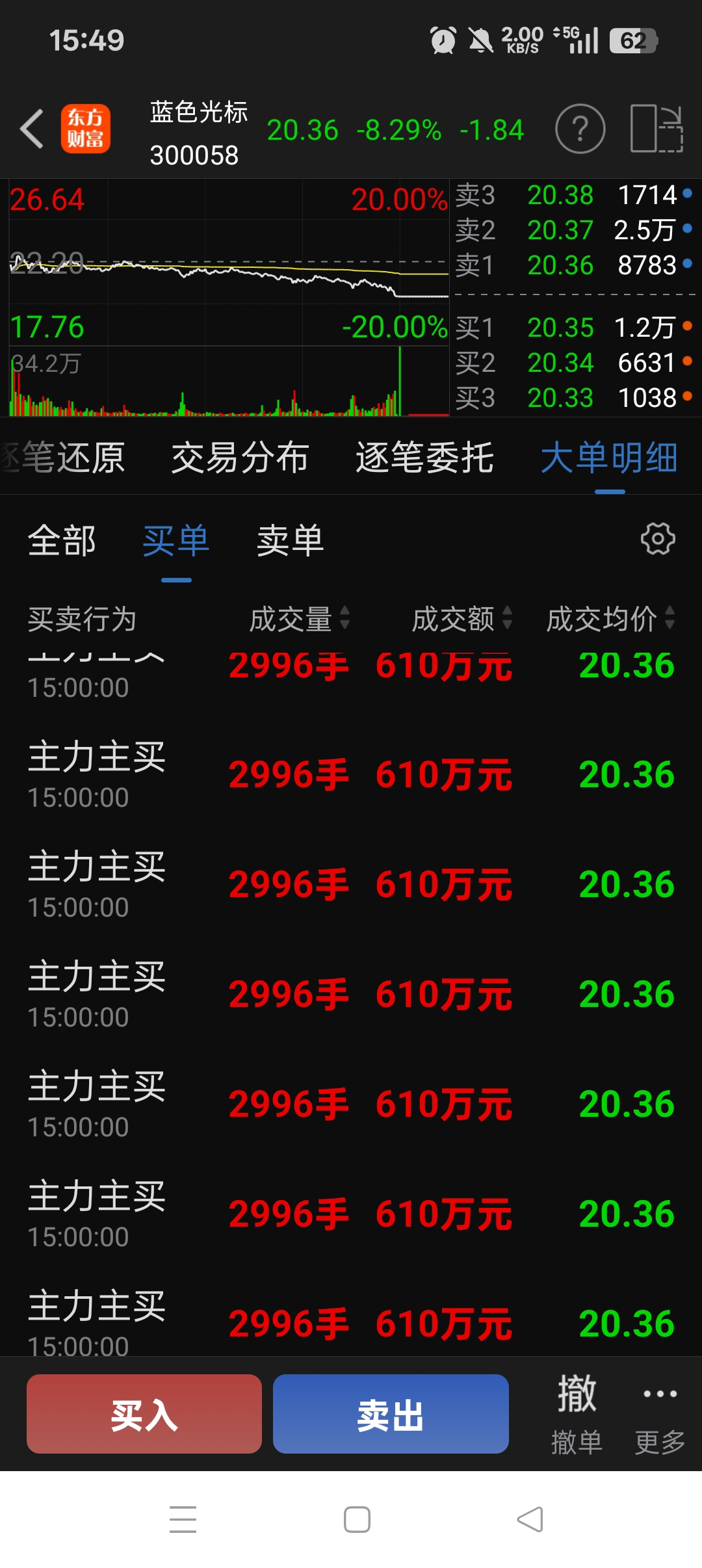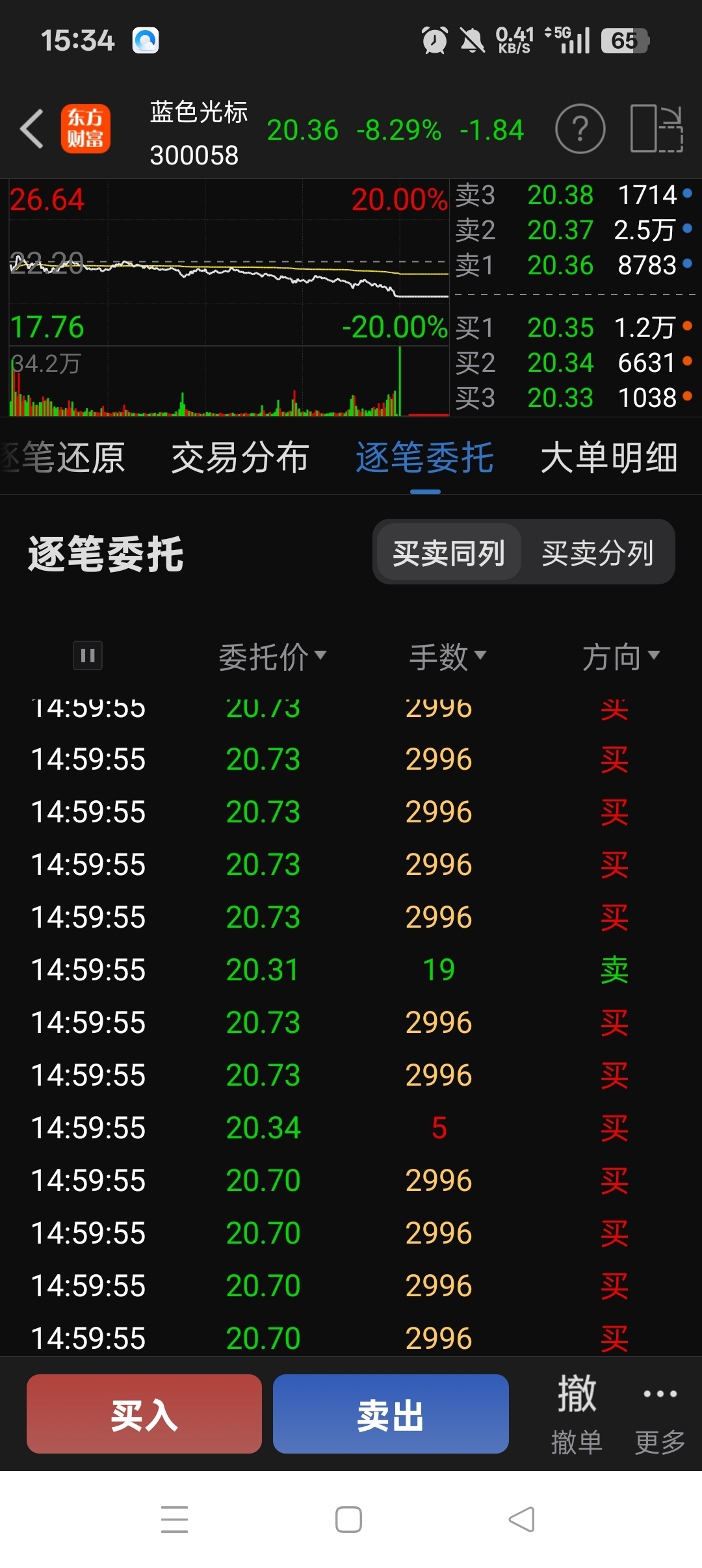$蓝色光标(SZ300058)$ 今天回调有点多,尾盘3分钟34万手