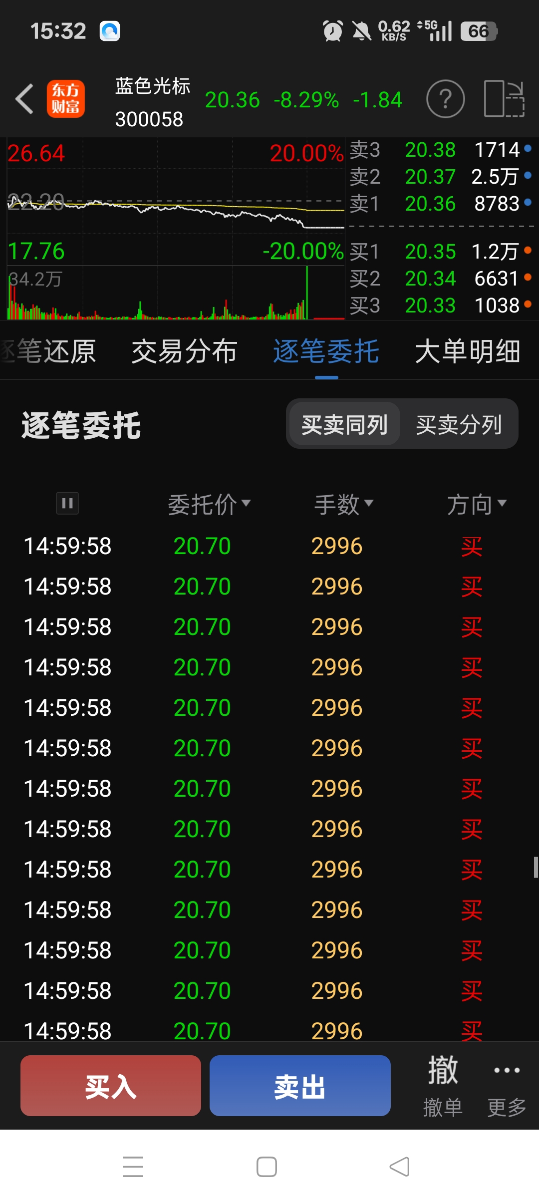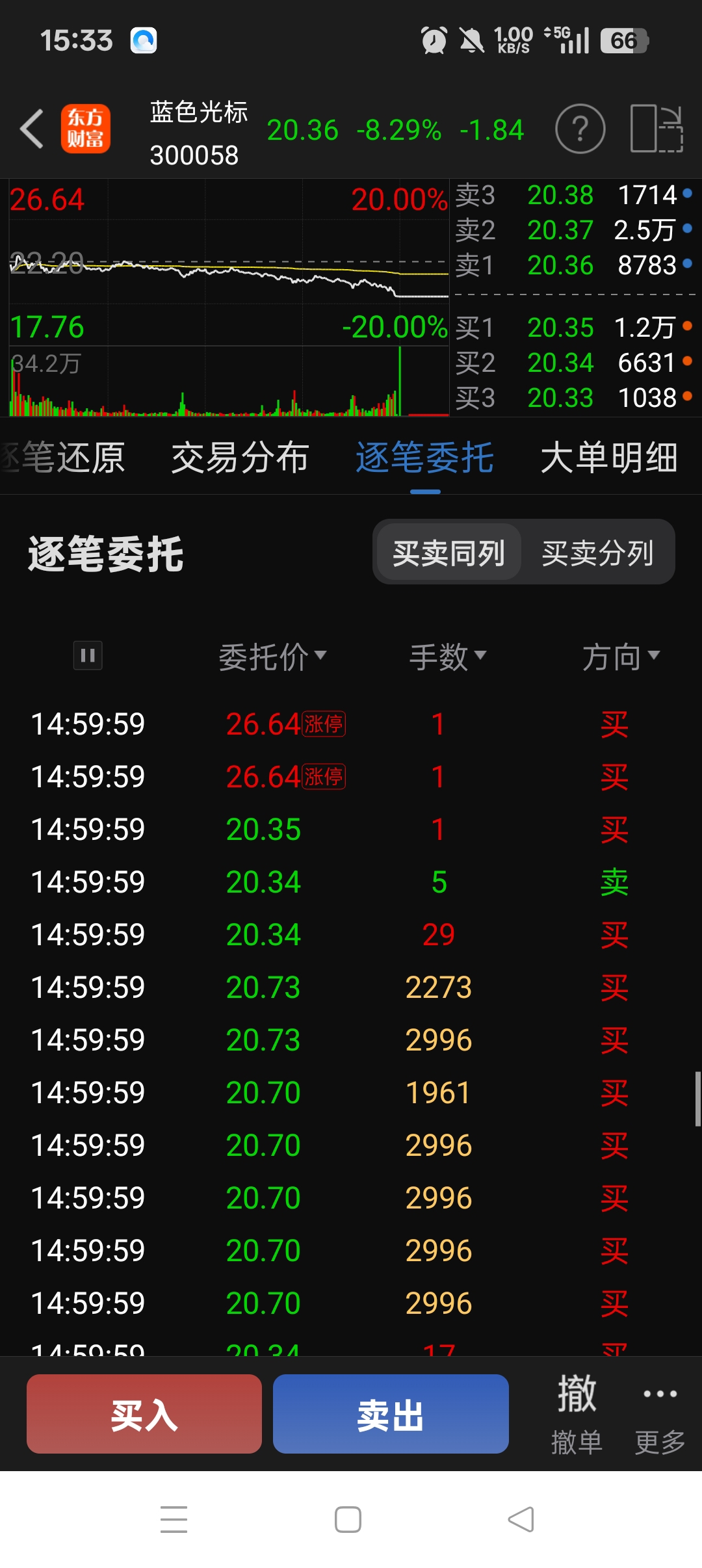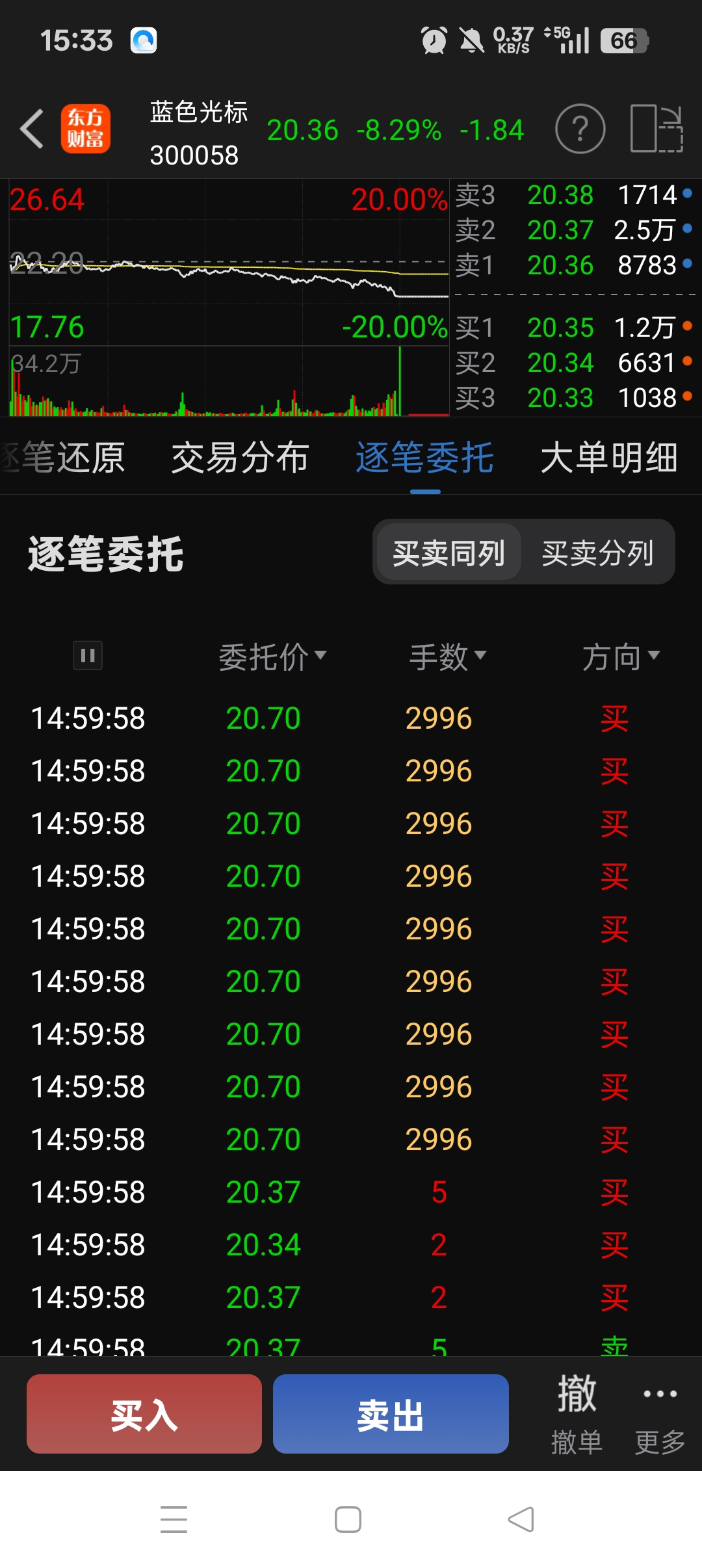 $蓝色光标(SZ300058)$ 今天回调有点多,尾盘3分钟34万手