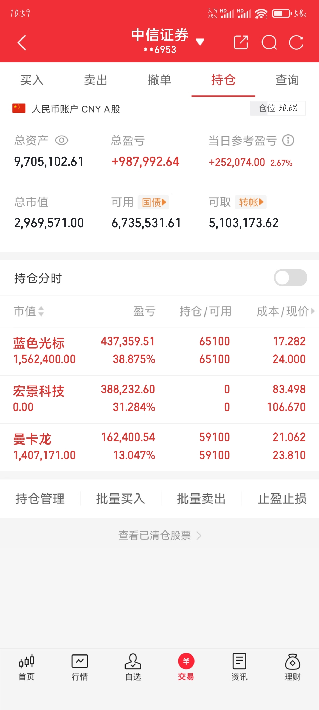 大家上午好,来更新一下今日持仓,今天又星期四了真快啊今天早上给宏景科技给止盈出局