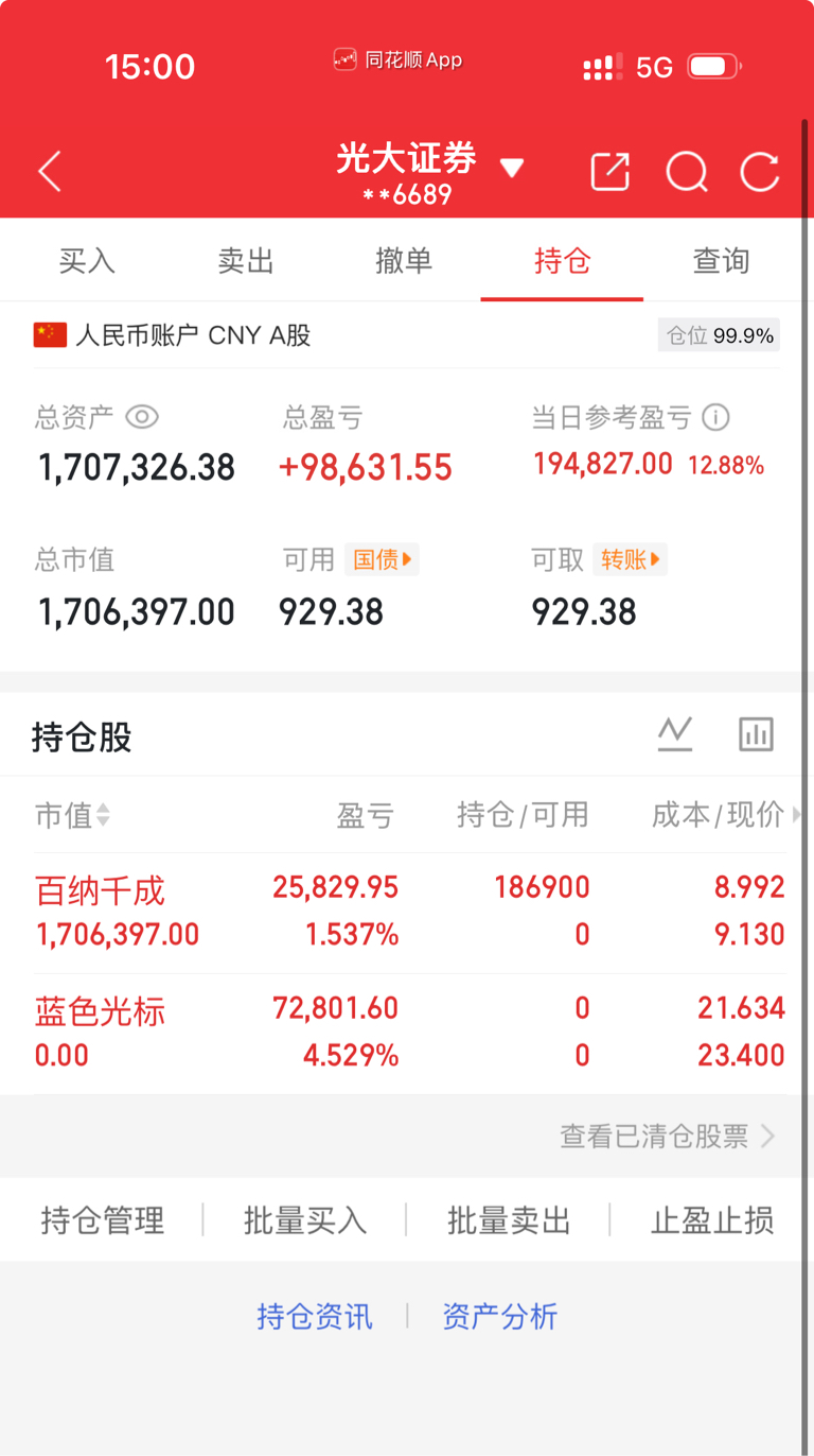 各位股友!今日账户直接盈利19.48万,账户新高稳稳拿下!昨天被蓝色洗盘吓破胆的