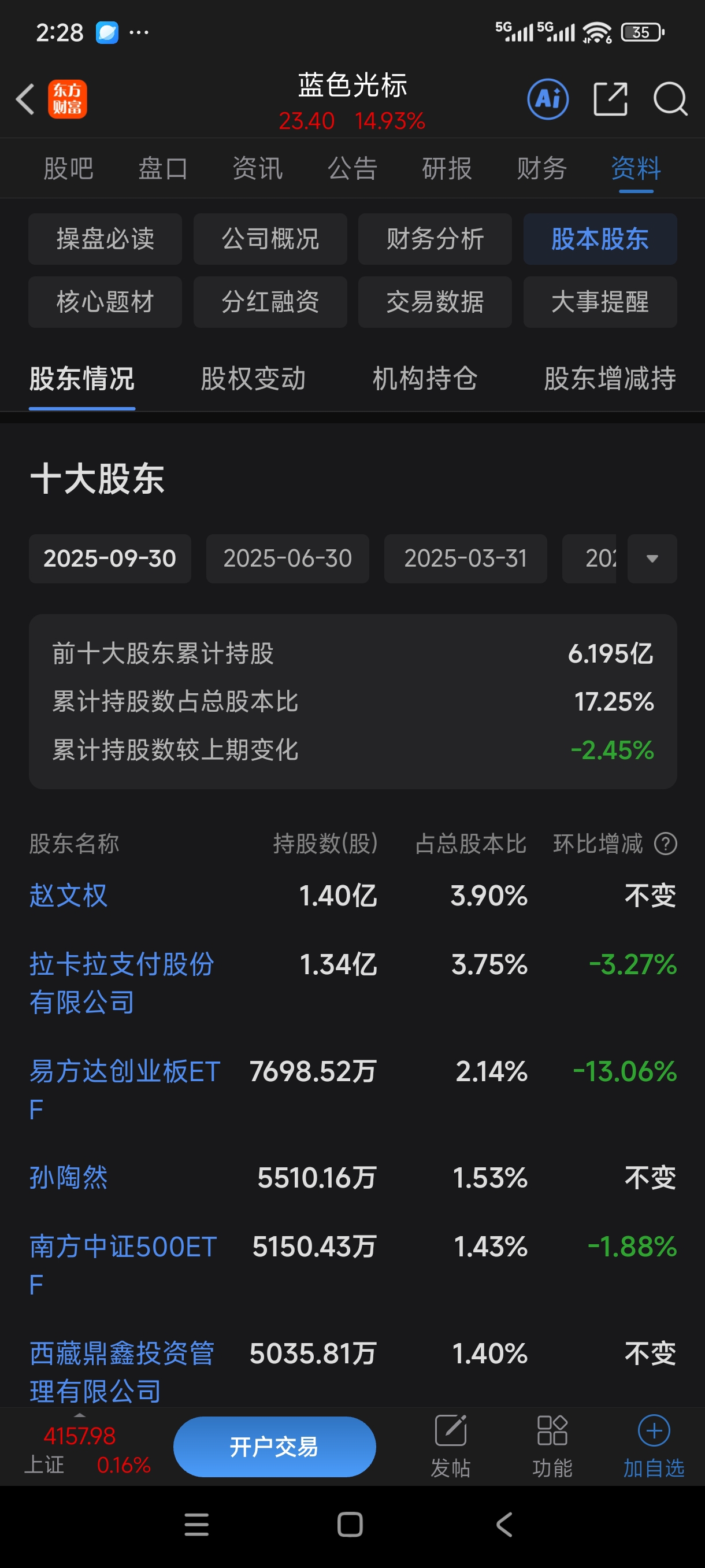 $蓝色光标(SZ300058)$ 拉卡拉持有蓝色光标是第二大股东一月份蓝色光标股价翻一倍,一股涨了将近12元持有一亿多股份一月这就赚了十几亿,外加英国来客跨境业务明天不大涨