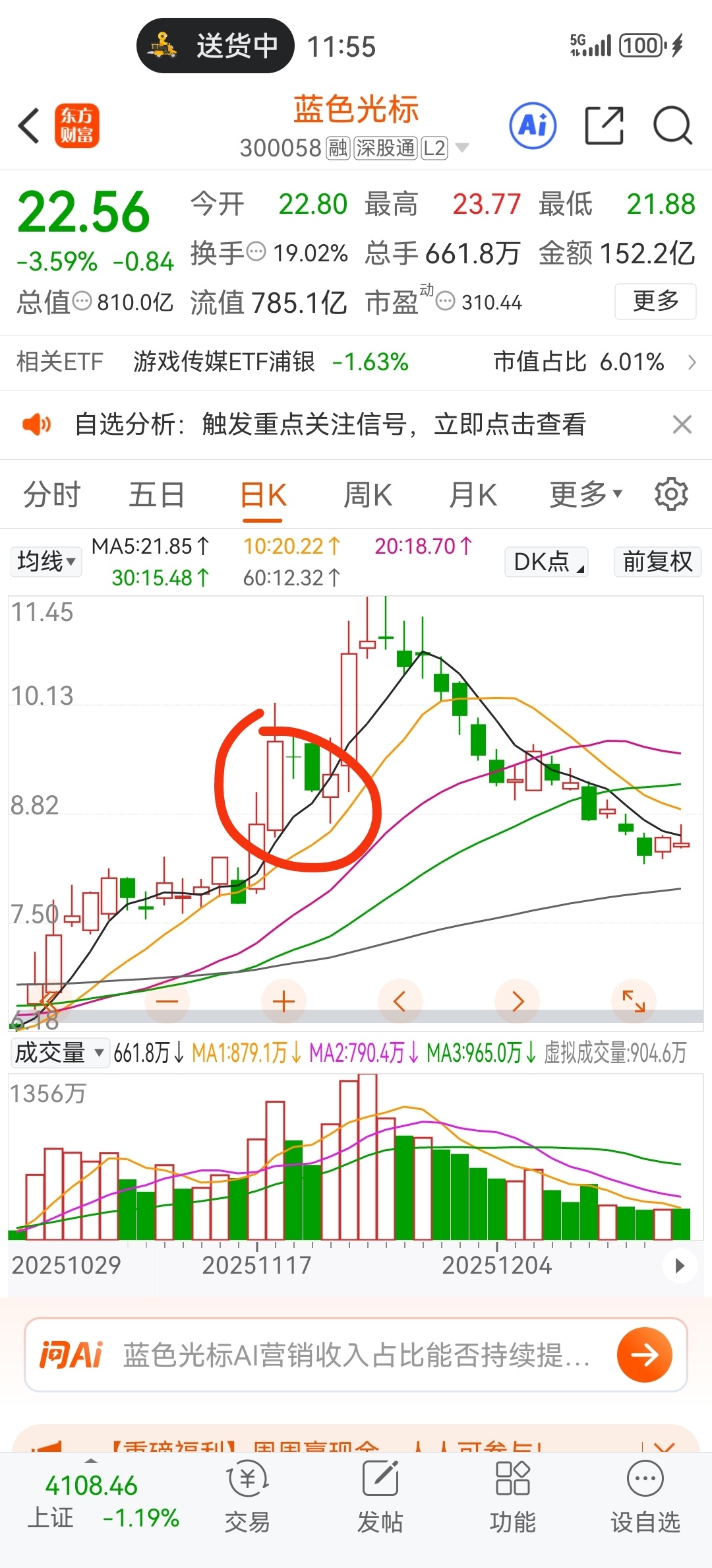 $蓝色光标(SZ300058)$ 昨天拉板没封住,今天理性振荡交换筹码是非常正常的,开盘大跌回踩五日线有强支撑。趋势还在,我持续看好。