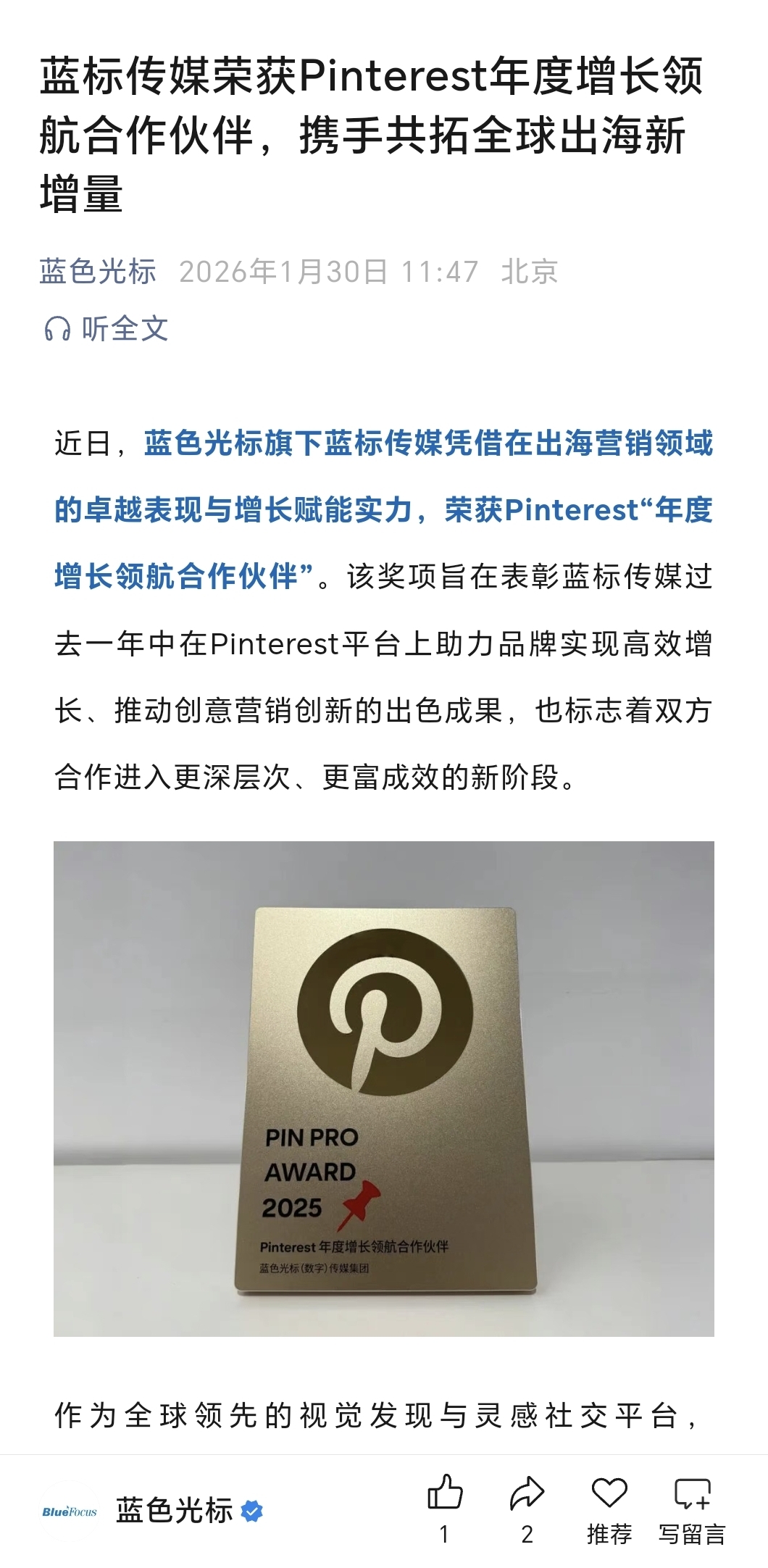 $蓝色光标(SZ300058)$ 又又又拿奖