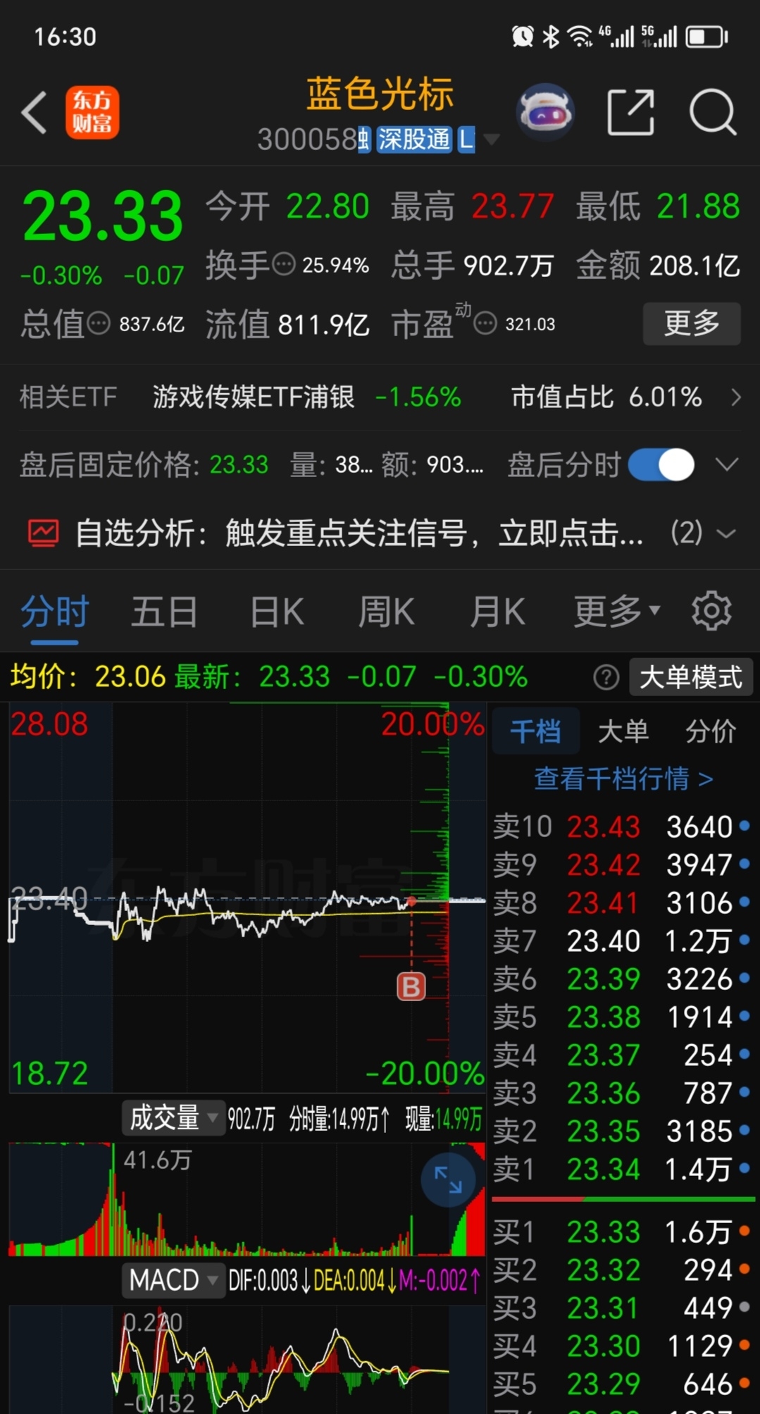 $蓝色光标(SZ300058)$ #强势机会# 良性调整,尾盘跟进,再创新高!
