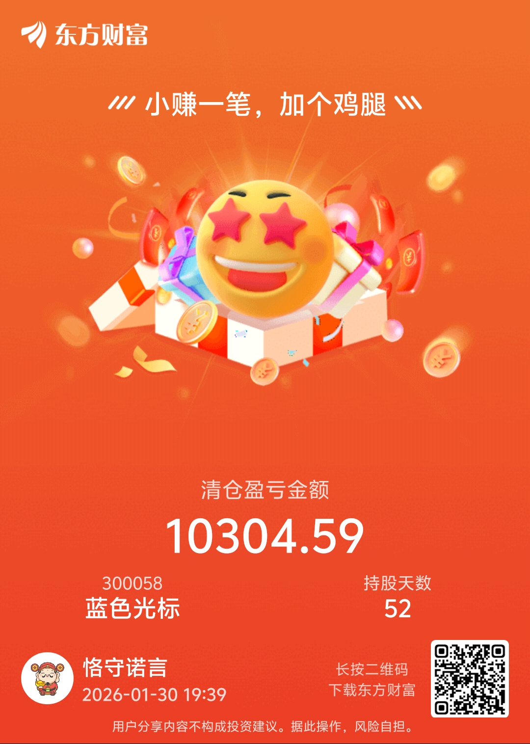 温馨提示: 1.根据《证券法》规定,禁止编造、传播虚假信息或者误导性信息,扰乱证券市场;2.用户在本社区发表的所有资料、言论等仅代表个人观点,与本网站立场无关,不对您构成任何投资建议。用户应基于自己的独立判断,自行决定证券投资并承担相应风险。《东方财富社区管理规定》