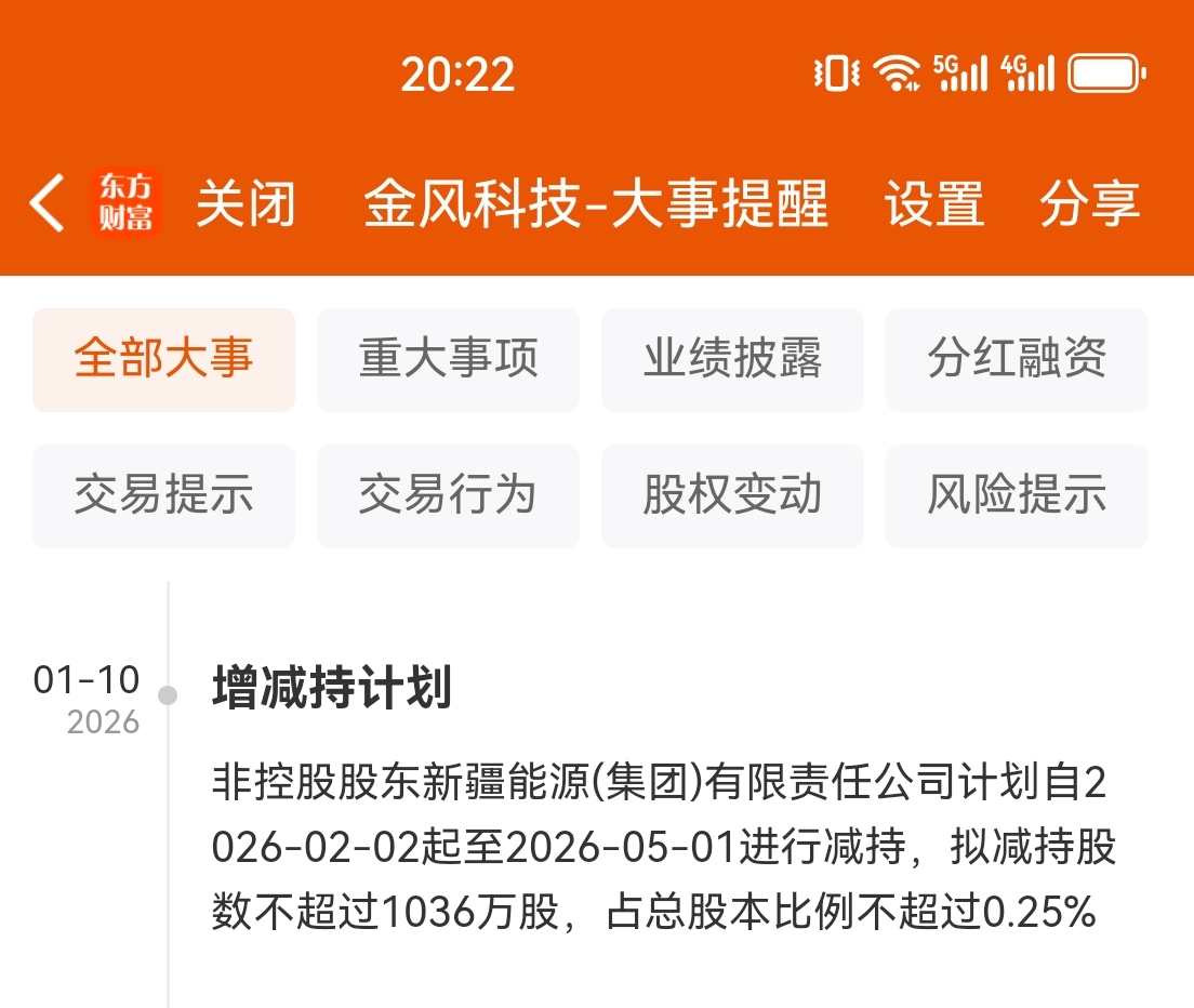 都是提前一个月发出来,金风科技,当天周五,1月9号然后发的减持,说明短期要见顶了