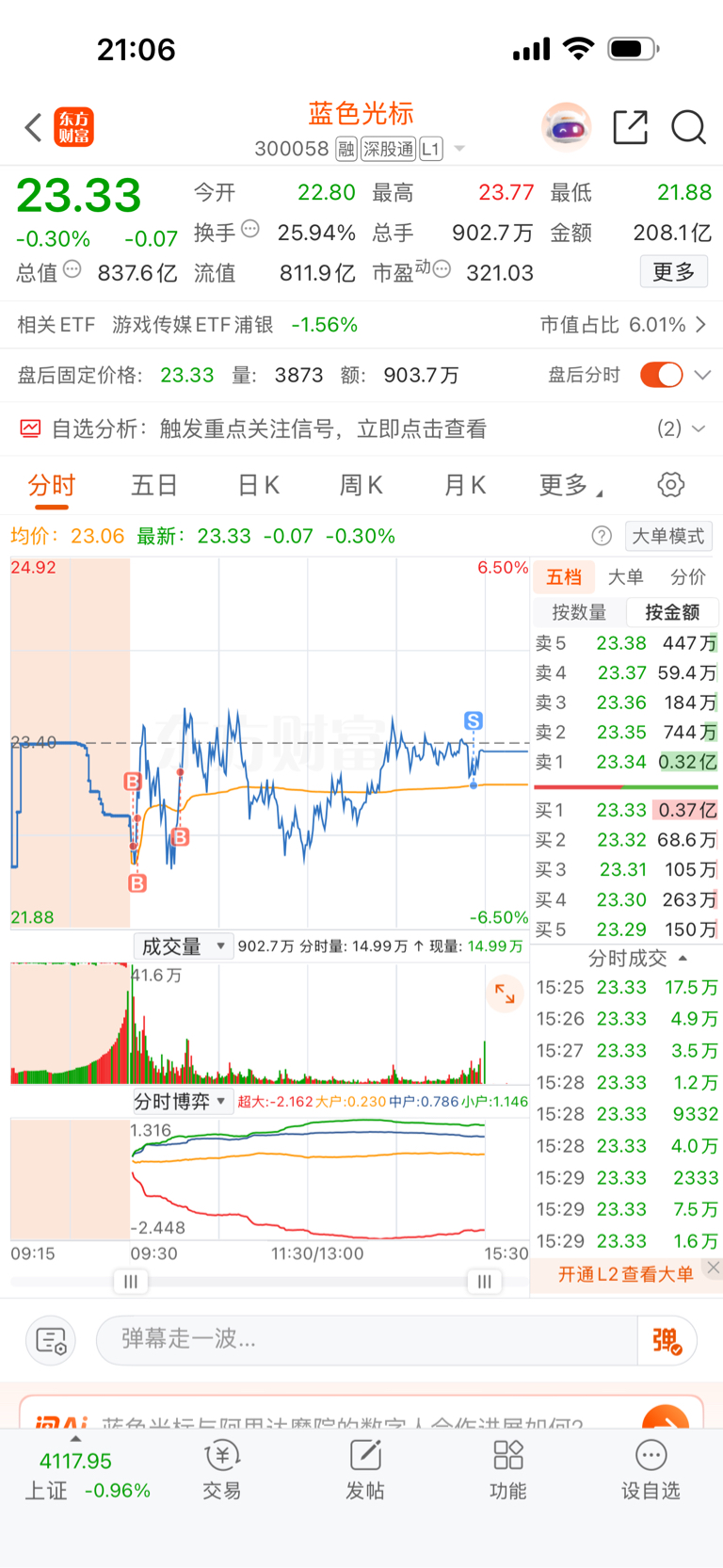 $蓝色光标(SZ300058)$ 左右蓝色右手因赛,中间同有,我这运气太好了!周一最少满仓亏10个点!