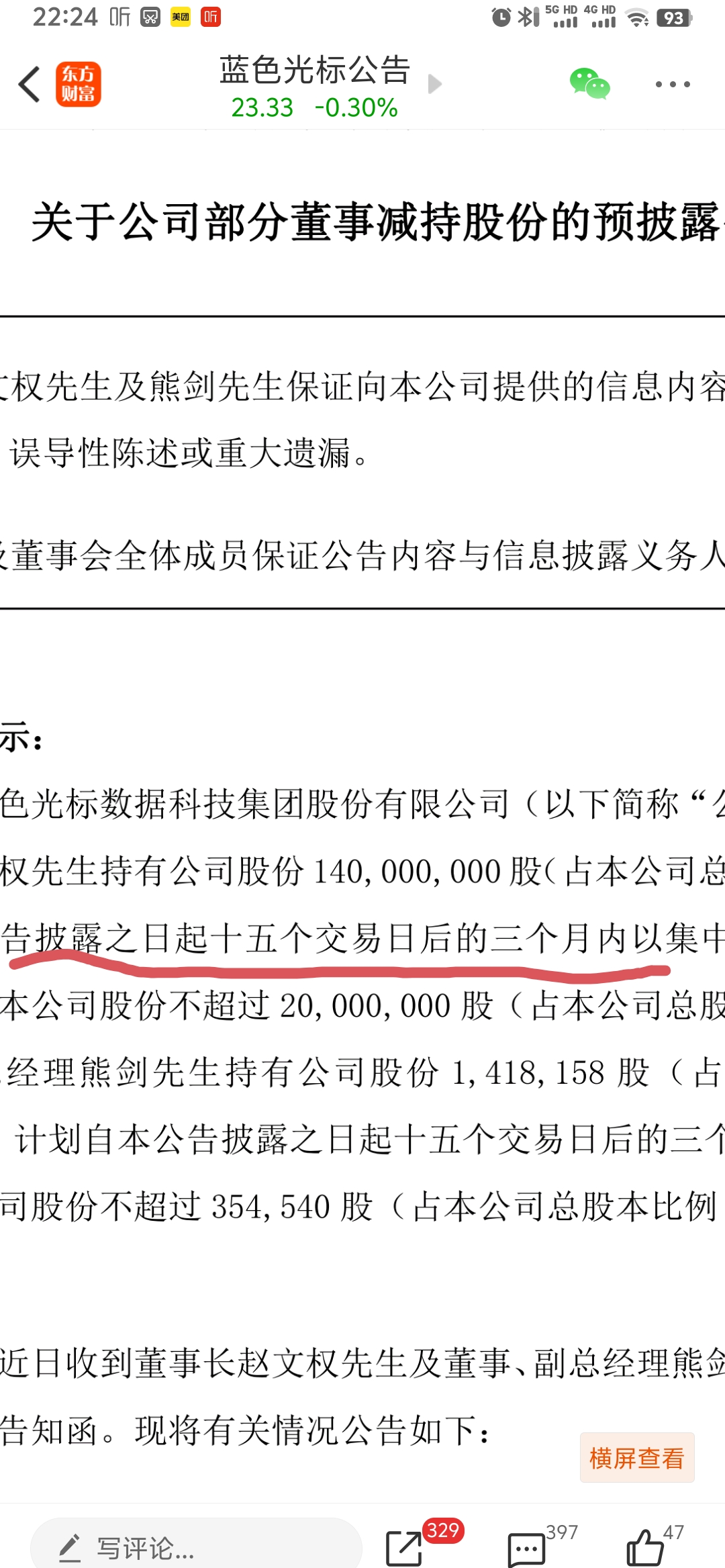 $蓝色光标(SZ300058)$ 自发布日,十五个交易日后,才能减持,