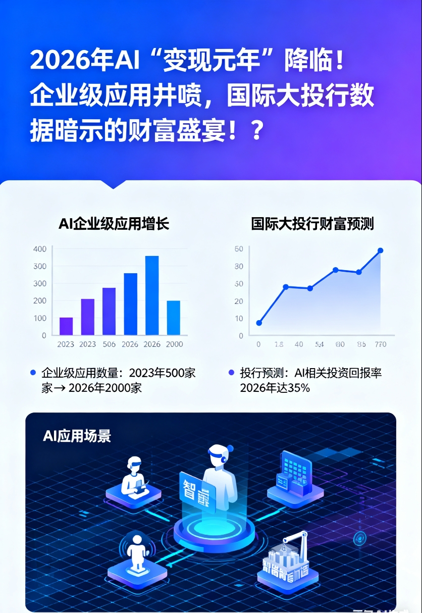 2026年是AI从“算力基建”转向“应用变现”的关键年,企业级AI应用爆发、Agent与垂直场景落地加速,盈利焦点转向ROIC与现金流兑现 。