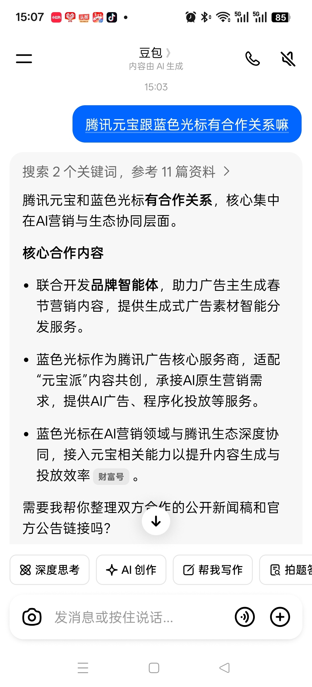 $蓝色光标(SZ300058)$ 蓝色光标与腾讯元宝也有合作关系,减持也是15个工作日后,刚好股价拉起来再减持!