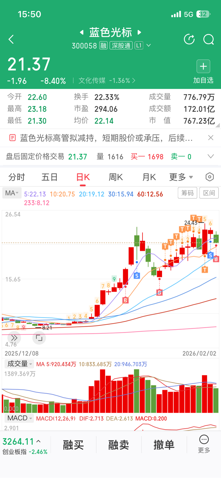 $蓝色光标(SZ300058)$ 周五出逃成功,今天重新建仓标子,明天估计还有一低,回踩20日线,今天先买点,明天做T用