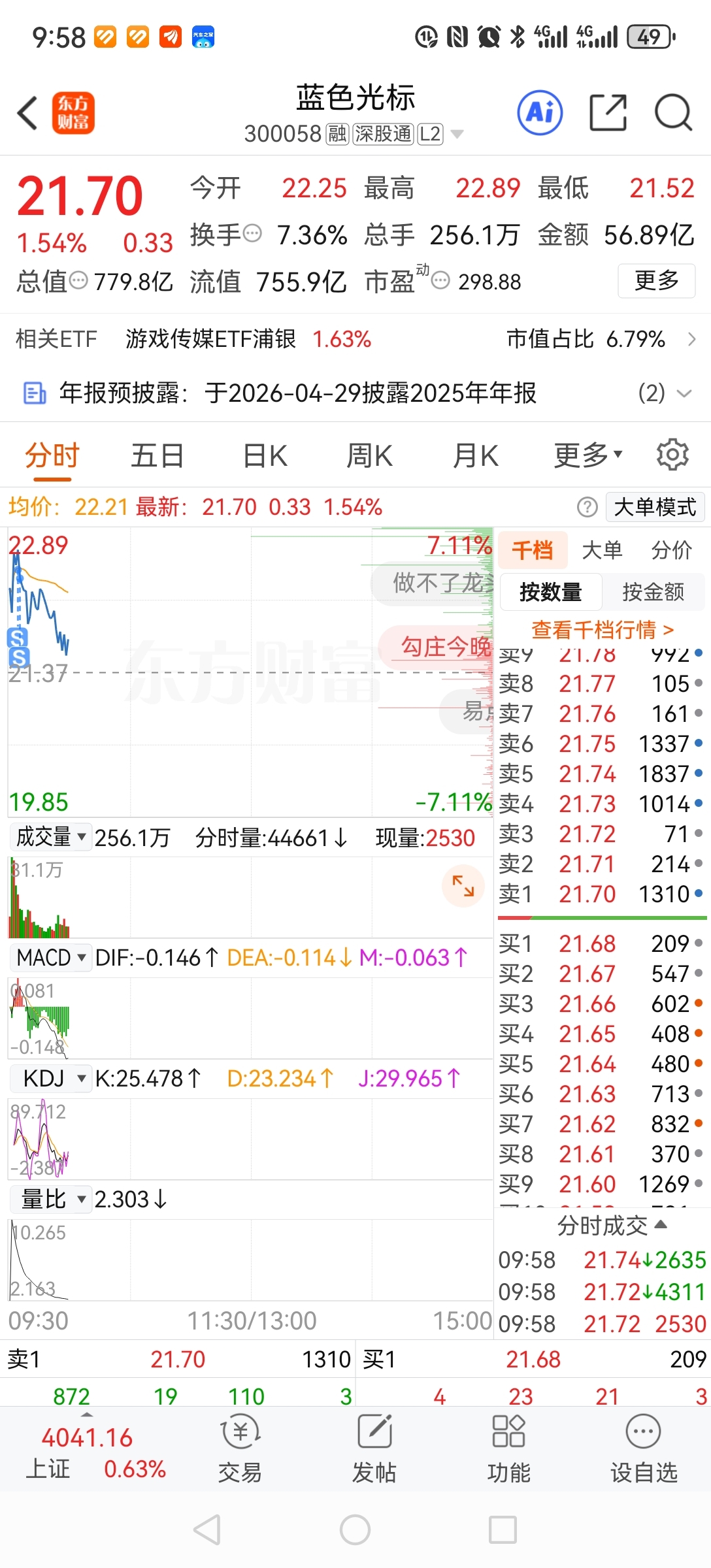$蓝色光标(SZ300058)$ 走了走了,套利5个多点