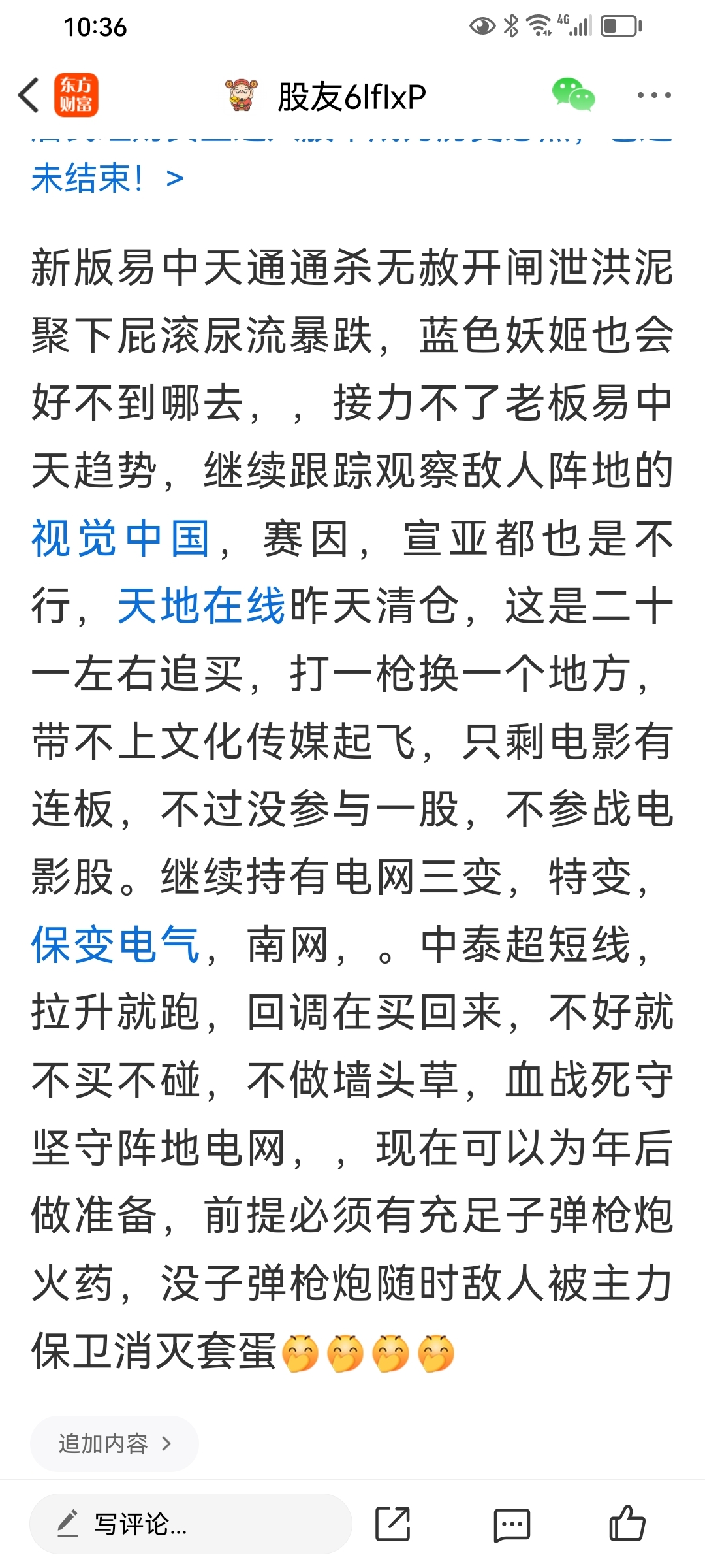 温馨提示: 1.根据《证券法》规定,禁止编造、传播虚假信息或者误导性信息,扰乱证券市场;2.用户在本社区发表的所有资料、言论等仅代表个人观点,与本网站立场无关,不对您构成任何投资建议。用户应基于自己的独立判断,自行决定证券投资并承担相应风险。《东方财富社区管理规定》