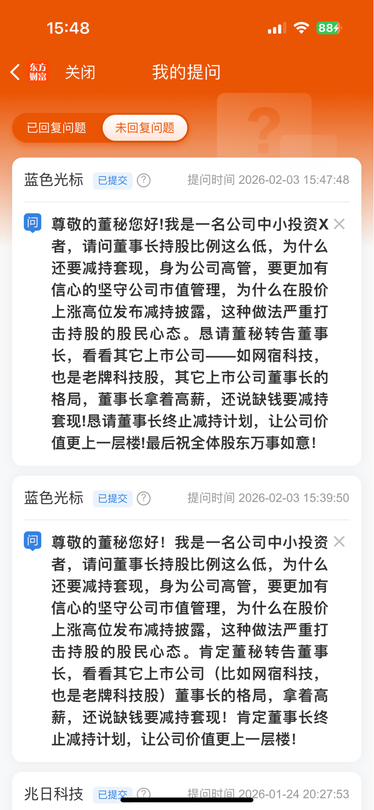 问候一下减持套现的董事长