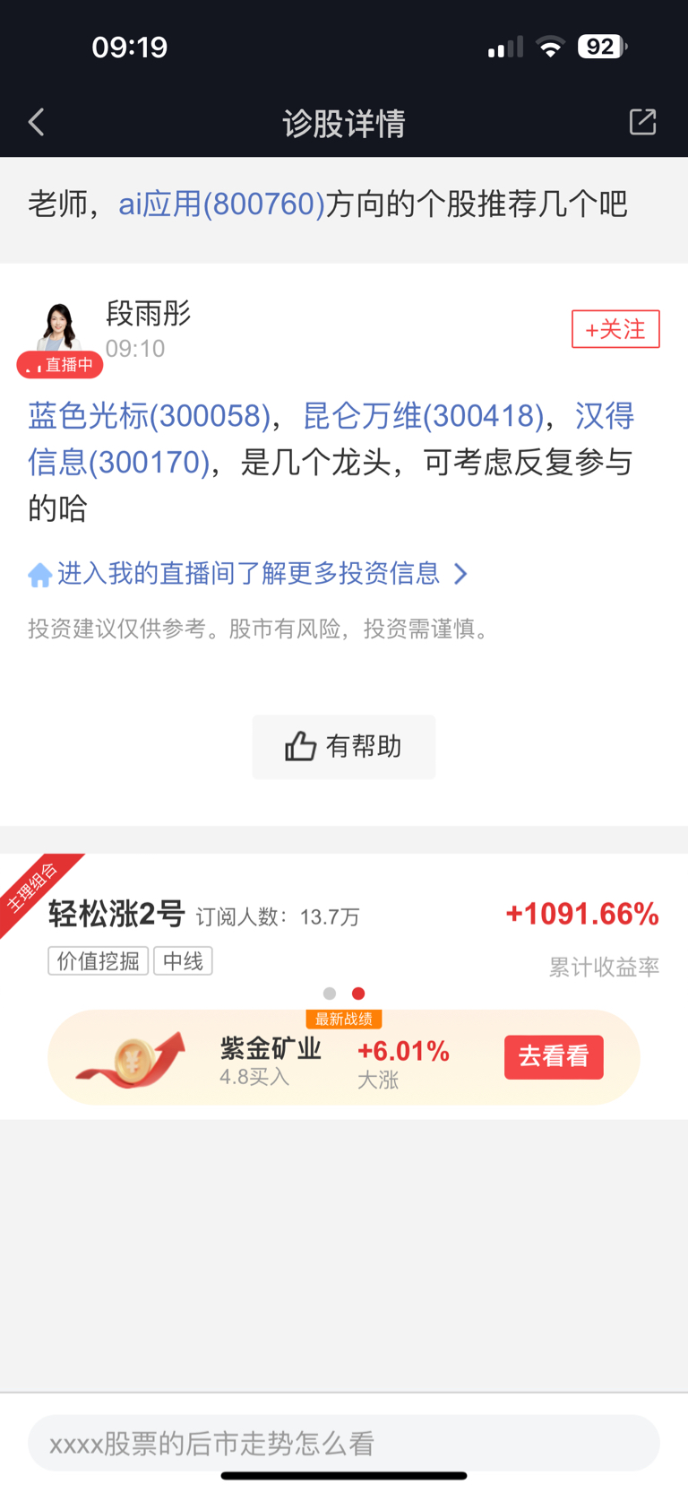 温馨提示: 1.根据《证券法》规定,禁止编造、传播虚假信息或者误导性信息,扰乱证券市场;2.用户在本社区发表的所有资料、言论等仅代表个人观点,与本网站立场无关,不对您构成任何投资建议。用户应基于自己的独立判断,自行决定证券投资并承担相应风险。《东方财富社区管理规定》