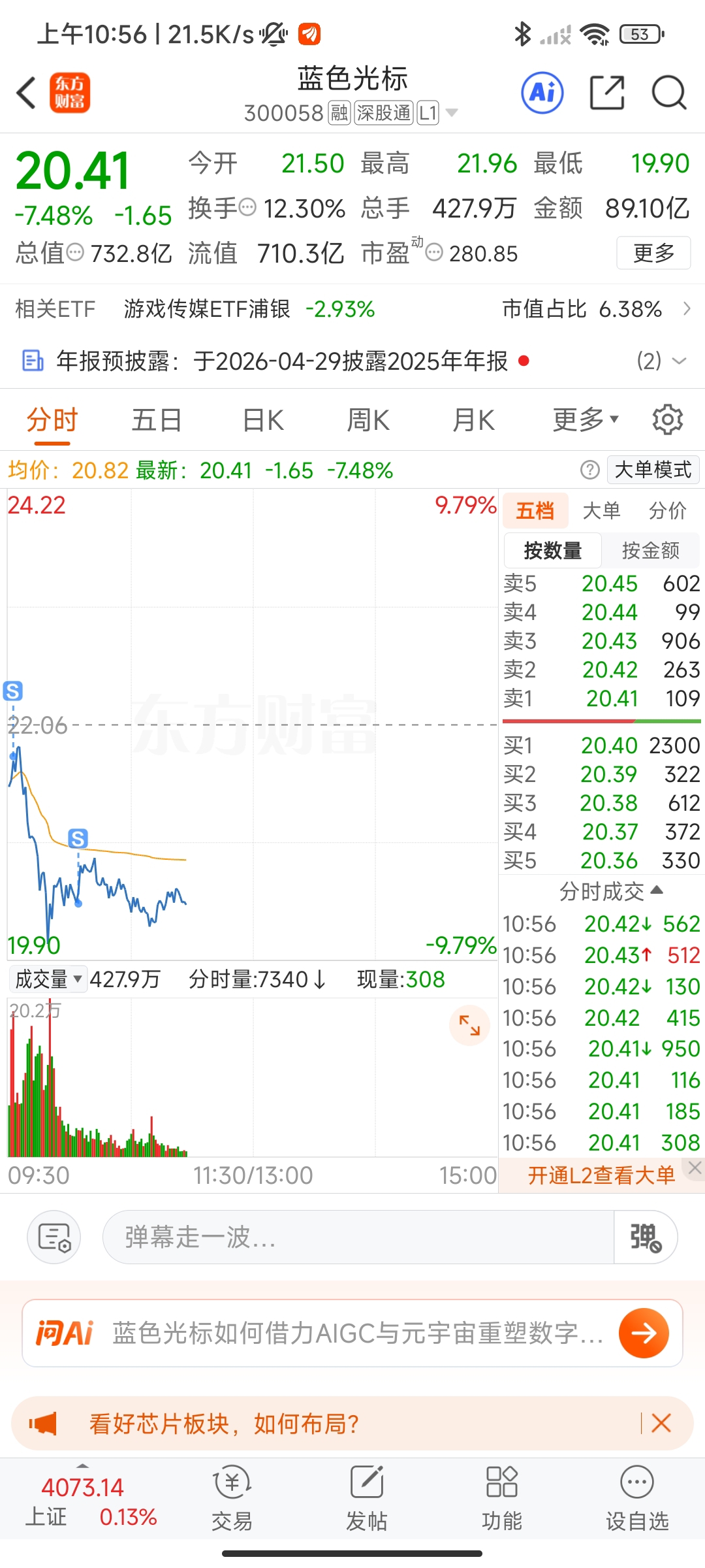 $蓝色光标(SZ300058)$ 我是主力,今天开盘价一键清仓,最低点底仓清仓,就是看不惯你们这群散户买入,就是要给你们散户长长记性,就是要套住你们,就是不想让你们赚钱,怎么了?有意见吗?