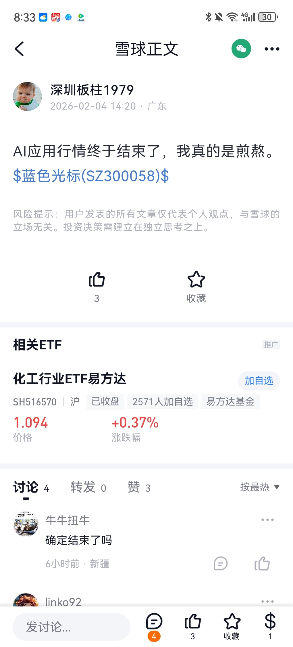 温馨提示: 1.根据《证券法》规定,禁止编造、传播虚假信息或者误导性信息,扰乱证券市场;2.用户在本社区发表的所有资料、言论等仅代表个人观点,与本网站立场无关,不对您构成任何投资建议。用户应基于自己的独立判断,自行决定证券投资并承担相应风险。《东方财富社区管理规定》