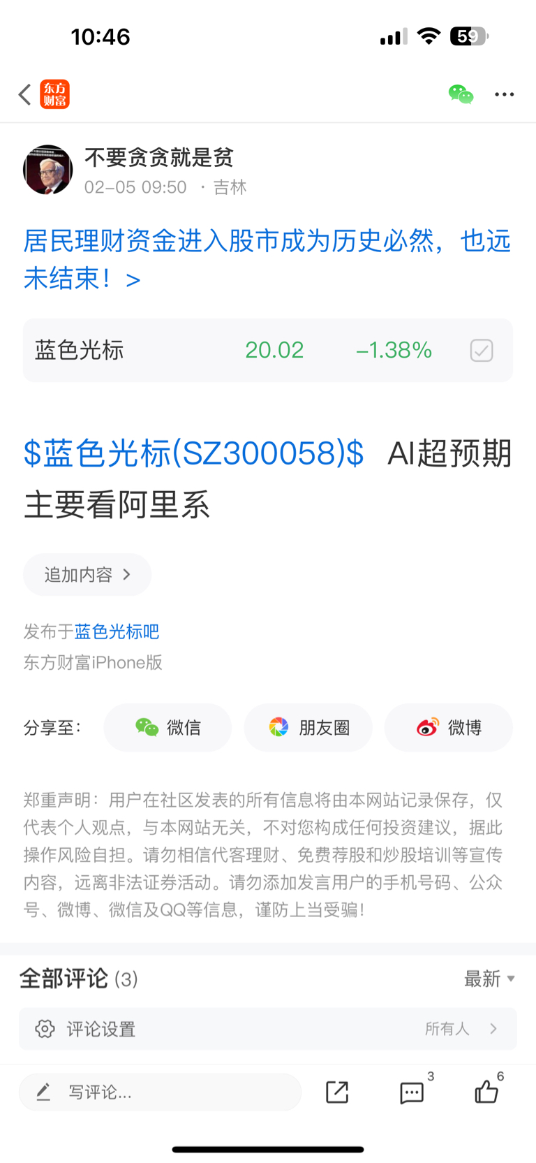 温馨提示: 1.根据《证券法》规定,禁止编造、传播虚假信息或者误导性信息,扰乱证券市场;2.用户在本社区发表的所有资料、言论等仅代表个人观点,与本网站立场无关,不对您构成任何投资建议。用户应基于自己的独立判断,自行决定证券投资并承担相应风险。《东方财富社区管理规定》