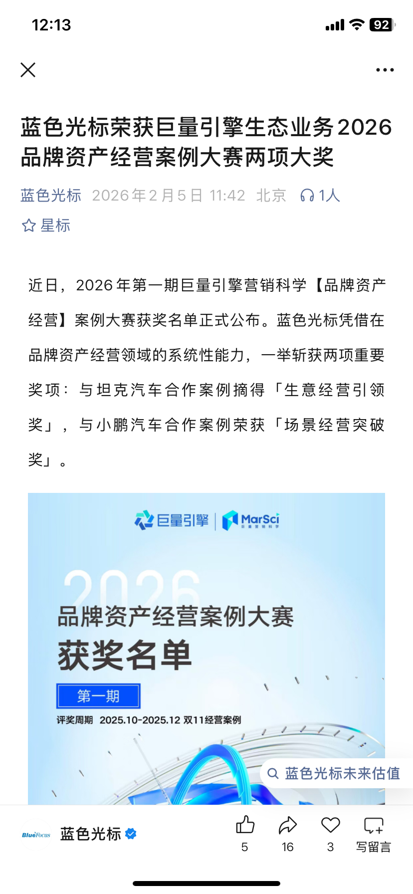 $蓝色光标(SZ300058)$ 太优秀了,蓝王,年终了天天都得奖,我就不信机构都眼瞎了这么优秀的公司还看不上?