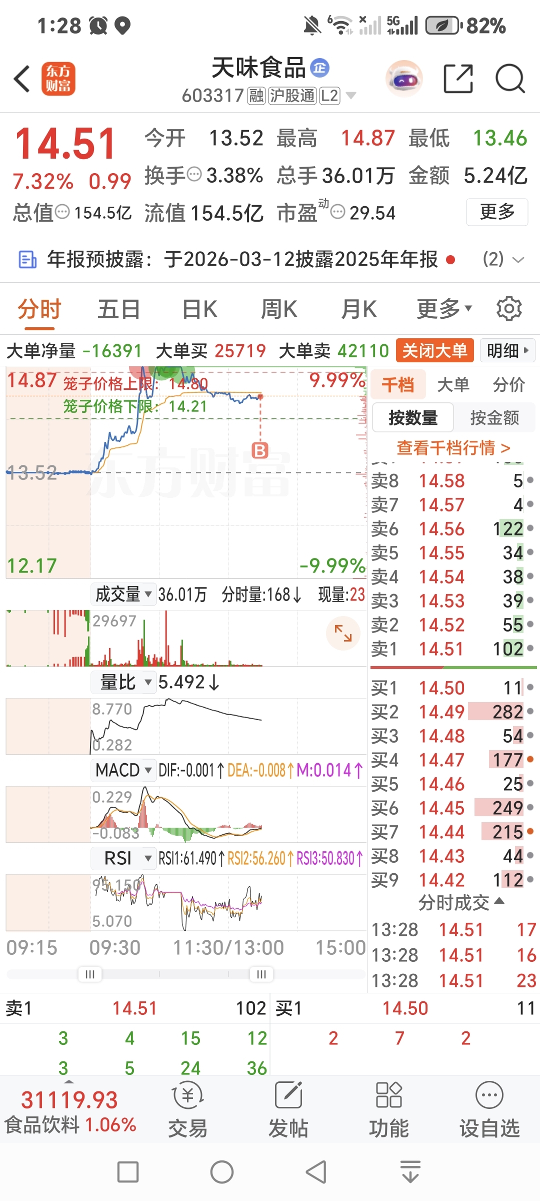 买入天味食品和东百集团各5层和2层仓位以后只搞短线多数都是一日游行情