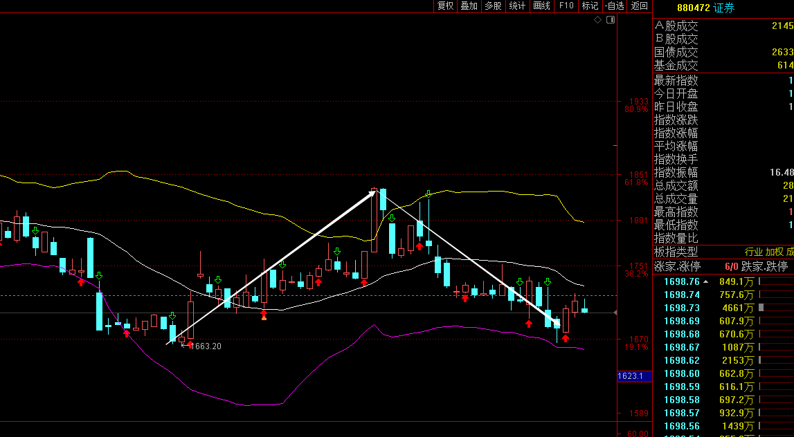 通过对大金融的分析以及有色金属的分析,我们总结一下有色金属现在这个位置不会出现再次大幅度下跌,而大金融券商保险银行也是围绕着布林线中轨进行横盘震荡,那么下个交易日指数依然是以横盘震荡为主,盘中即使有小幅度下跌也没有必要担心,下个星期二就是调整结束时间的变盘窗口