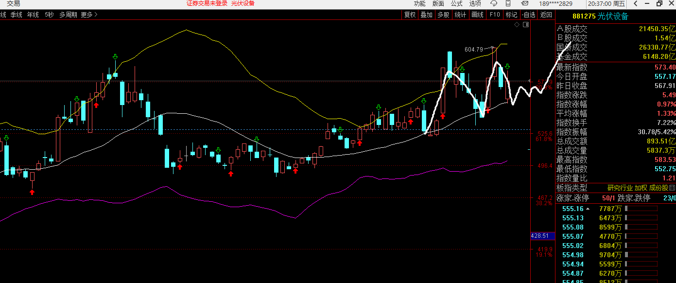 星期三我在直播间以及文章里面也给大家讲了,光伏设备到了卖线的位置,这个地方有调整,昨天星期四光伏就出现了大面积跌停,又在星期四的文档里面我再次给大家讲到,我说光伏设备这次回调的支撑位在13天线或者20天线的位置,13天线离20天线也只有0.5%,今天光伏设备刚好就是回踩到了布林线中轨然后再拉起来的,是不是符合预期呢?个人认为光伏设备、电气设备这个地方还会围绕着布林线中轨横盘震荡2~3个交易日之后会再次掉头向上,我们在星期三把光伏类的个股做了减仓还没有捡回来,看看星期三的文档链接和星期四的文档链接我有没有讲到光伏要调整,支撑位在哪里。一些还在底部的光伏要重点关注,大涨的还是要做减仓,https://guba.eastmoney.com/news,gssz,1665414388.html