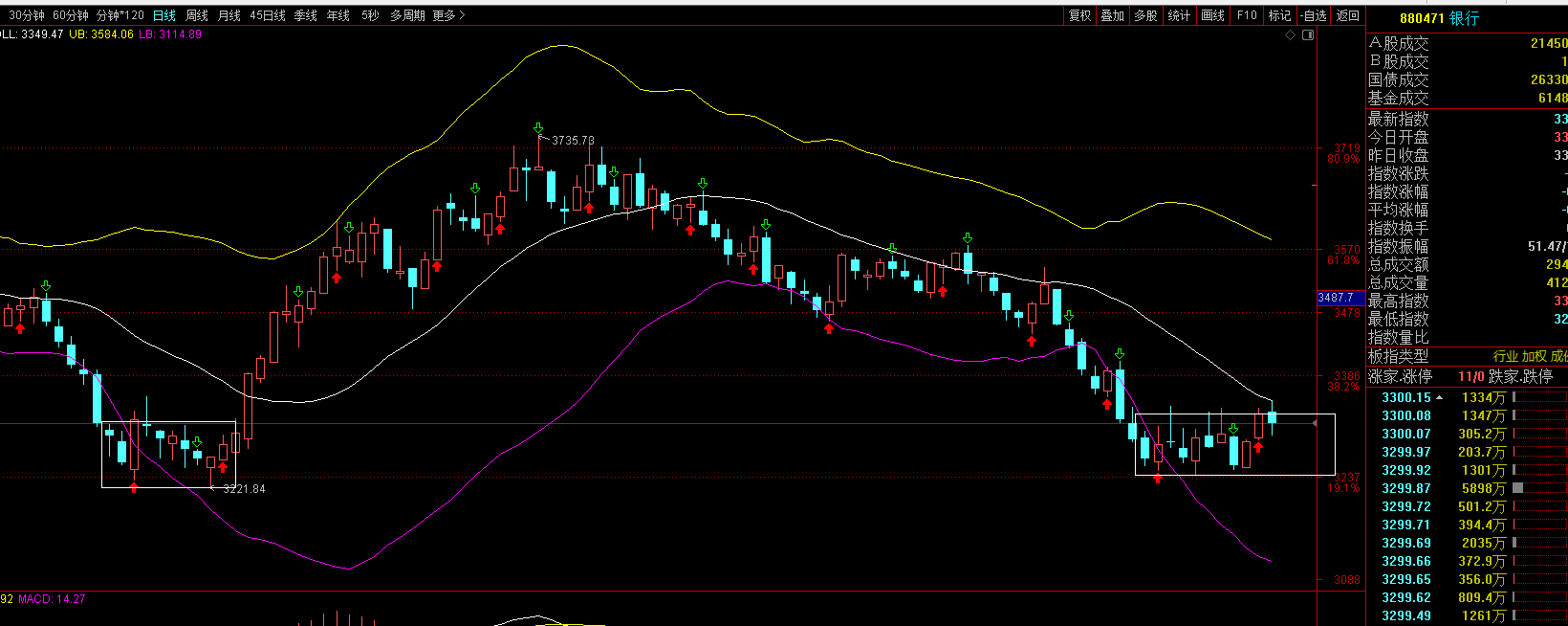 昨天在文档里面也给大家讲了券商和银行今天大概率会摸一下布林线的中轨然后再掉头向下,说了这个地方大金融券商和银行会围绕着布林线中轨进行震荡,银行和券商冲高回落那么今天的上证指数也就会出现冲高回落,这种走势在下午的盘面当中就是符合我们的预期,下星期一银行和券商依然还有震荡,通过30分钟60分钟120分钟去看券商指数下星期一前半个小时还有回调,回调之后个人认为10:00之后券商还会拉起来。星期一盘面应该是收红盘。银行和保险也是围绕着布林线的中轨进行横盘震荡,不会大跌但是也不会大涨,在1月30号的文章里面也给大家讲了,大金融券商和银行看成是一个大的商地就可以。https://caifuhao.eastmoney.com/news/20260130221737794462570