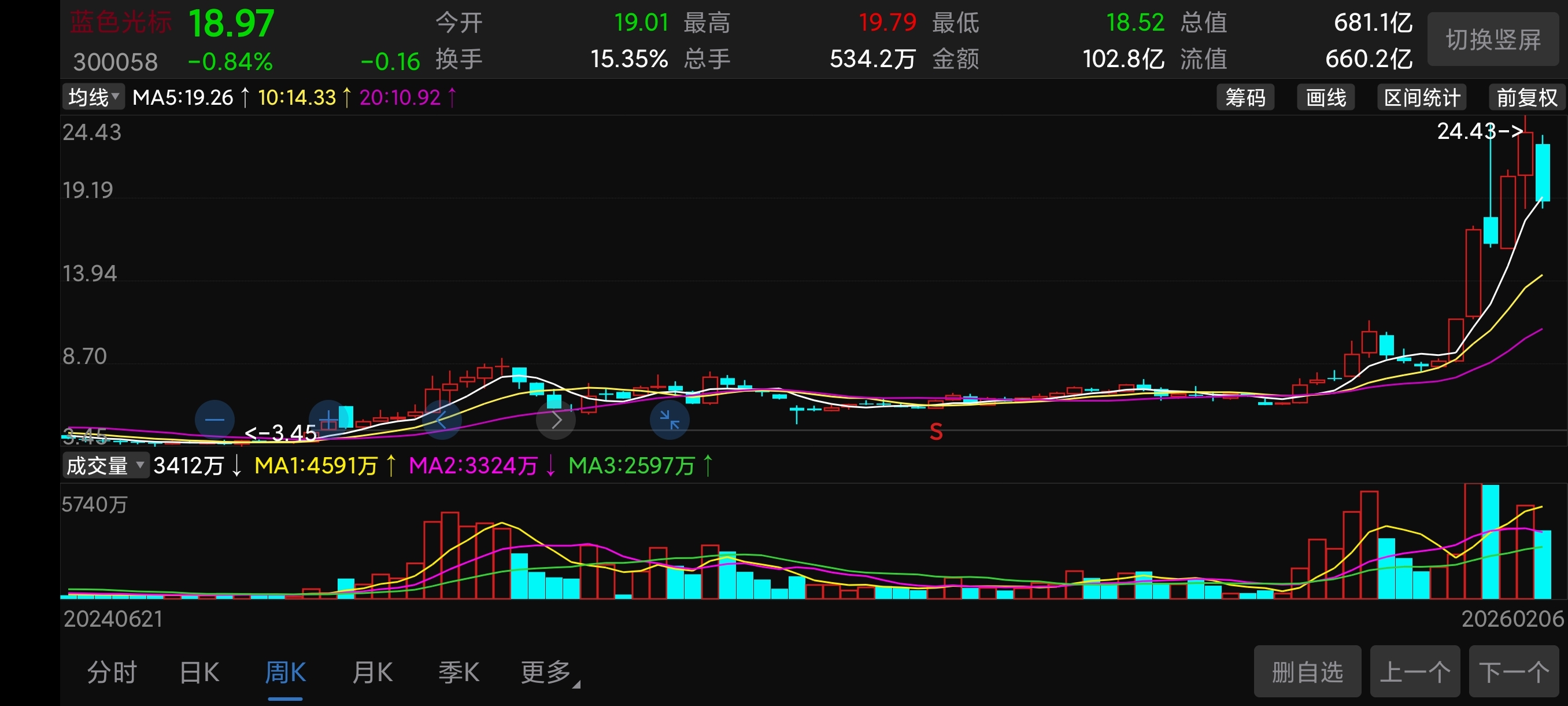 本周周阴K和前三周的长上影周阴K构成调整确认。结合股性,市值,空间,位置等因素,行情大概率在这里结束了