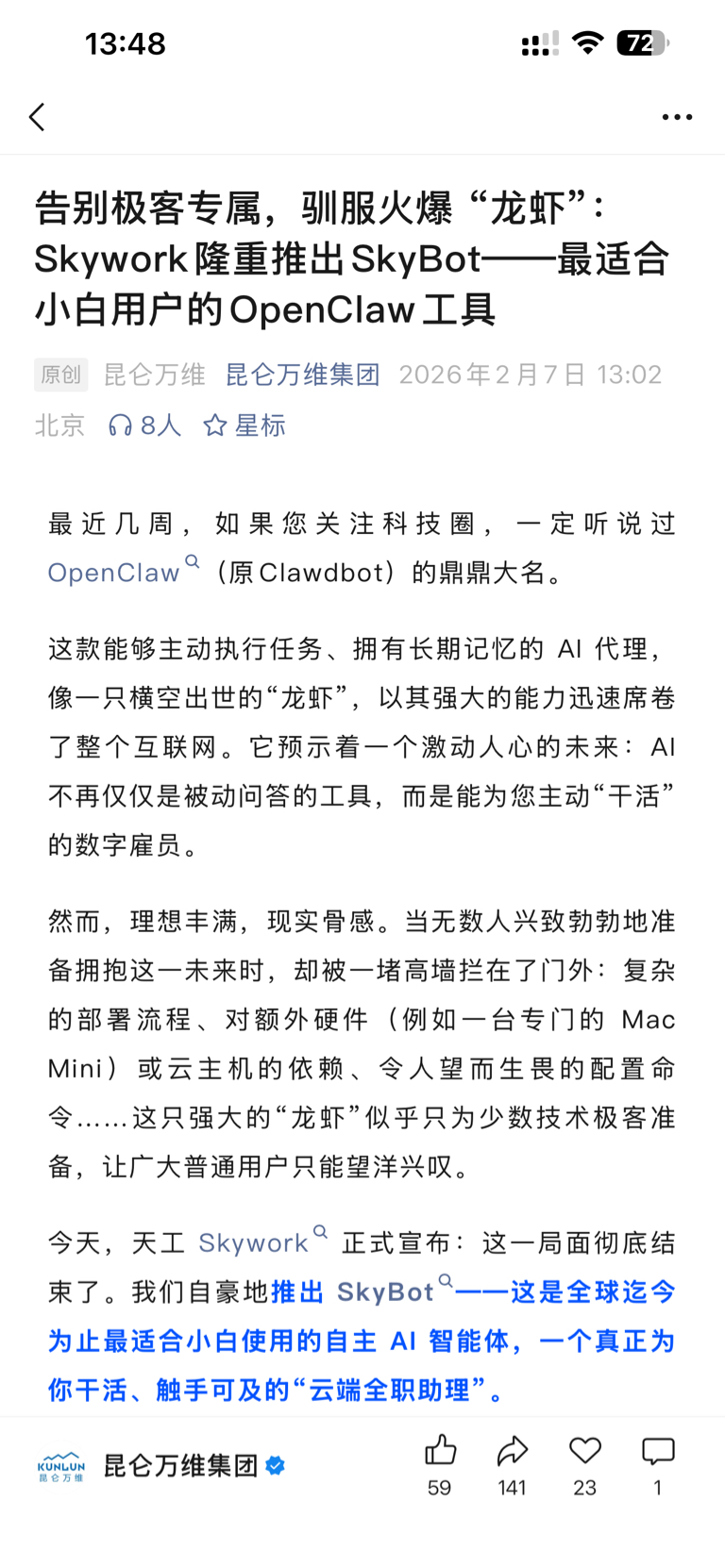 $蓝色光标(SZ300058)$ 看看昆仑万维,国产版龙虾来了