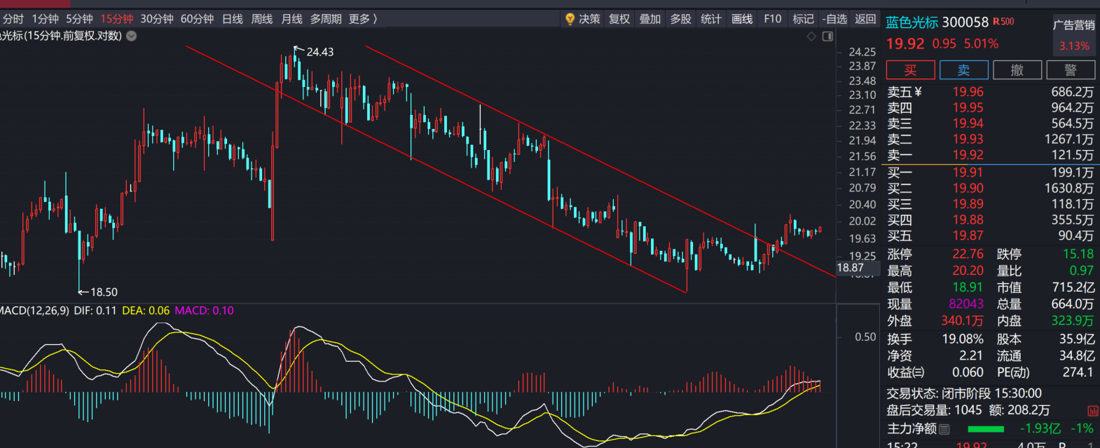上次十七多做到二十三四。今天我又来了。不过我惧高,现在再买我我就是买点过把瘾。今天30分钟K双底+底背离,进来再赌一把。现在小级别下降通道也突破了,还是值得期待的。