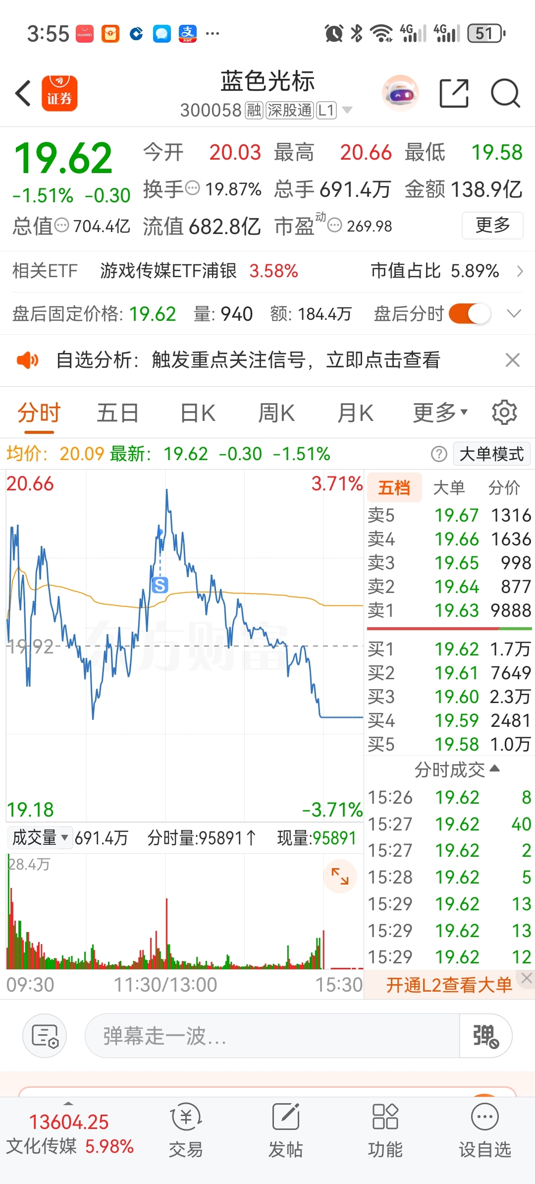$蓝色光标(SZ300058)$ 高位减持的股票,像过街老鼠一样人人喊打!昨天午后追高买的,还好今天高位卖掉没有亏