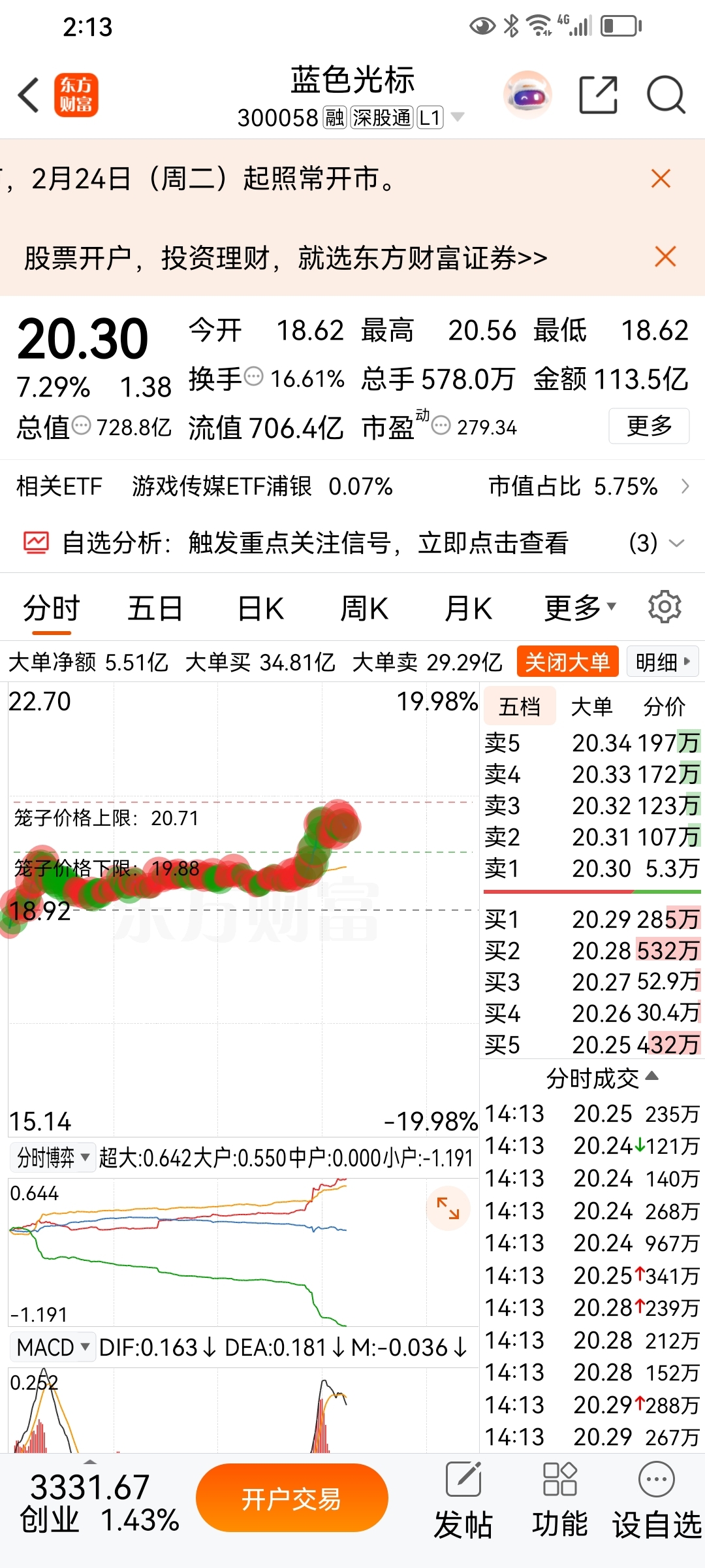 $蓝色光标(SZ300058)$ 看面相看有涨停希望,从形式看有妖气,