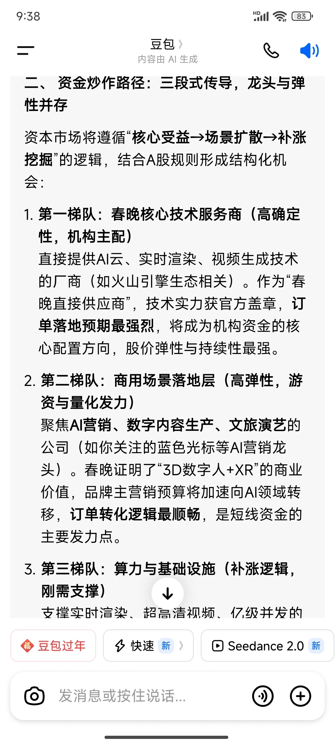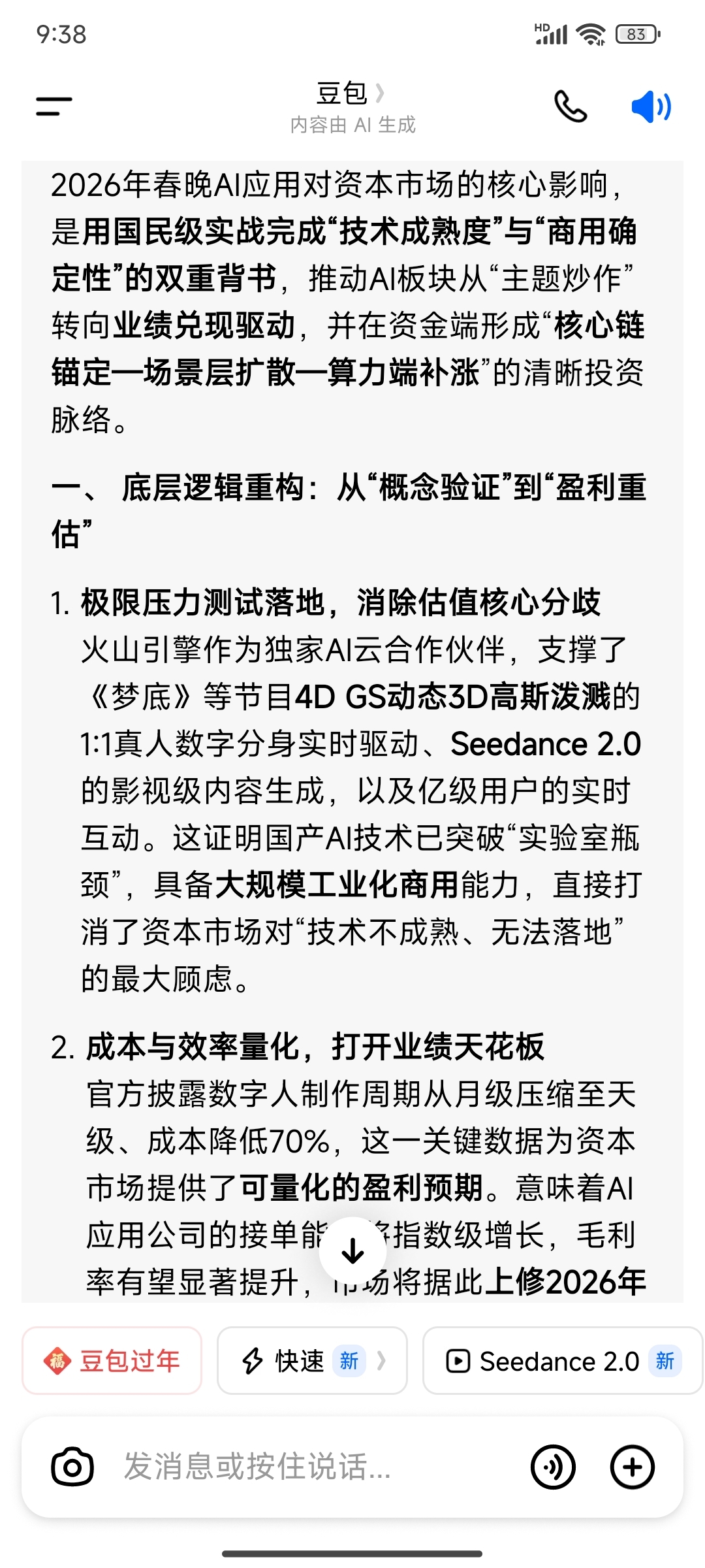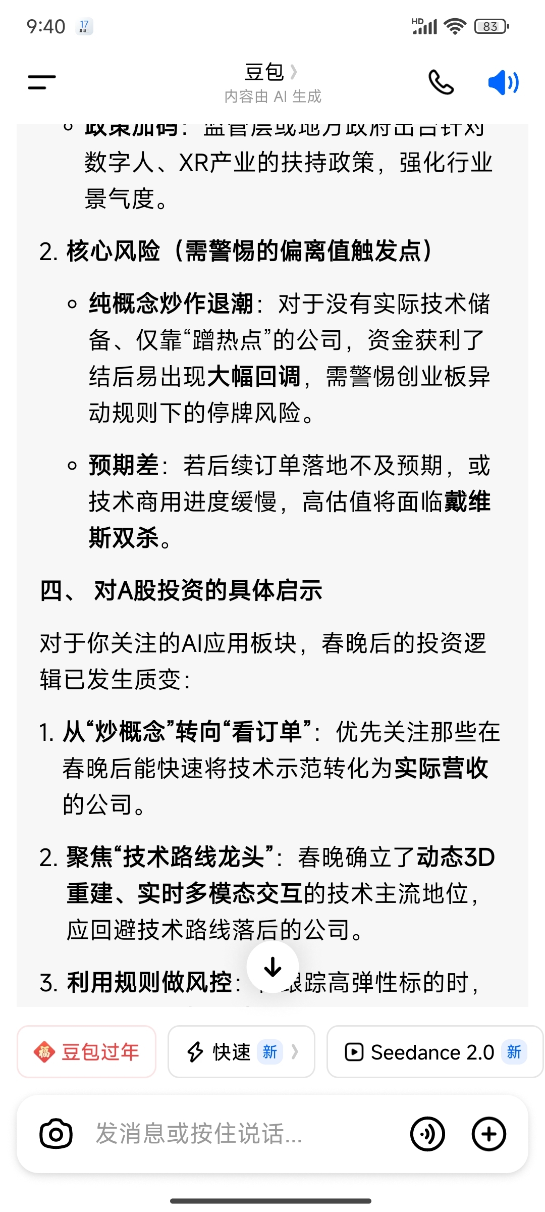 总结:2026年春晚是AI应用板块的估值重塑分水岭。它以无可辩驳的落地案例,给资
