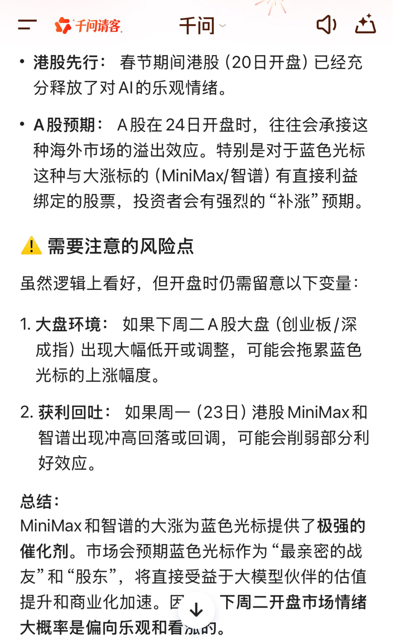 $蓝色光标(SZ300058)$ 下周二还有机会买?最多高开多少可以追?真的如千问说的这样?会不会高开骗我入套?