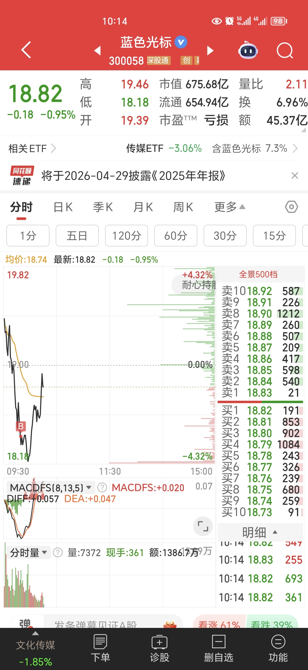 $蓝色光标(SZ300058)$ 冲高回落,开门是红了,真不容易,最后的子弹