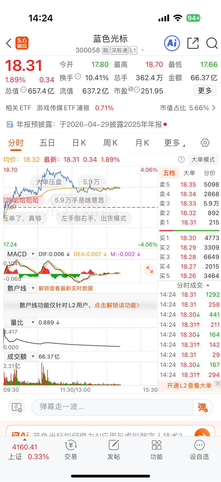 $蓝色光标(SZ300058)$ 6w压单,牛逼6666