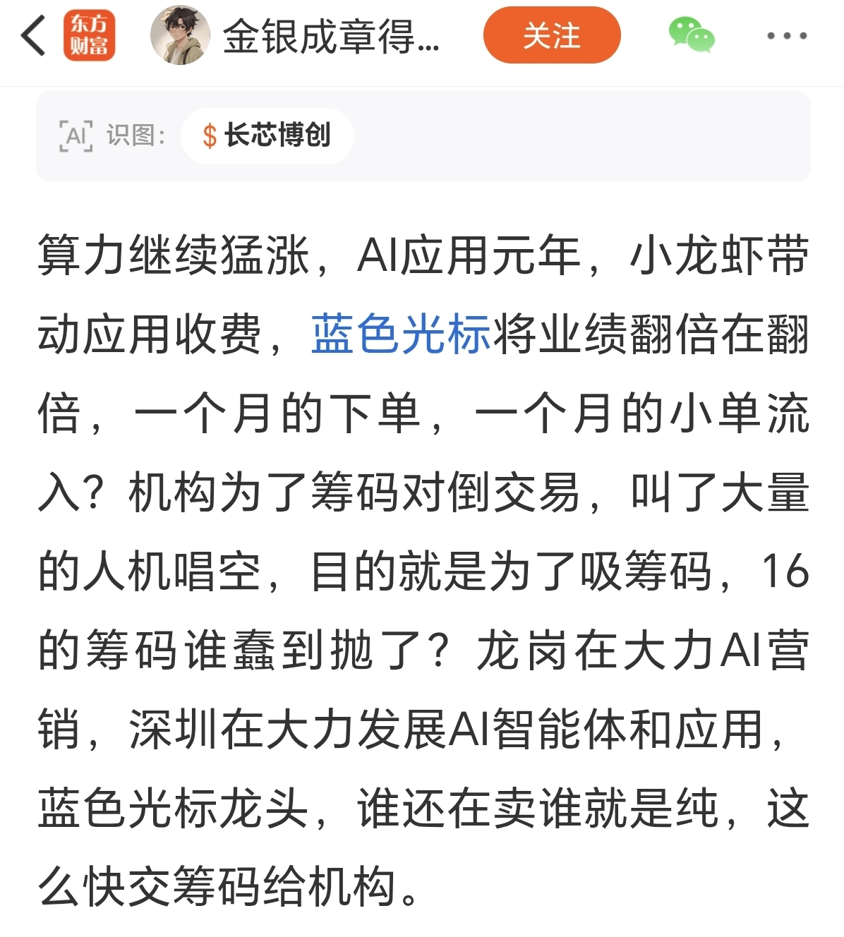 温馨提示: 1.根据《证券法》规定,禁止编造、传播虚假信息或者误导性信息,扰乱证券市场;2.用户在本社区发表的所有资料、言论等仅代表个人观点,与本网站立场无关,不对您构成任何投资建议。用户应基于自己的独立判断,自行决定证券投资并承担相应风险。《东方财富社区管理规定》