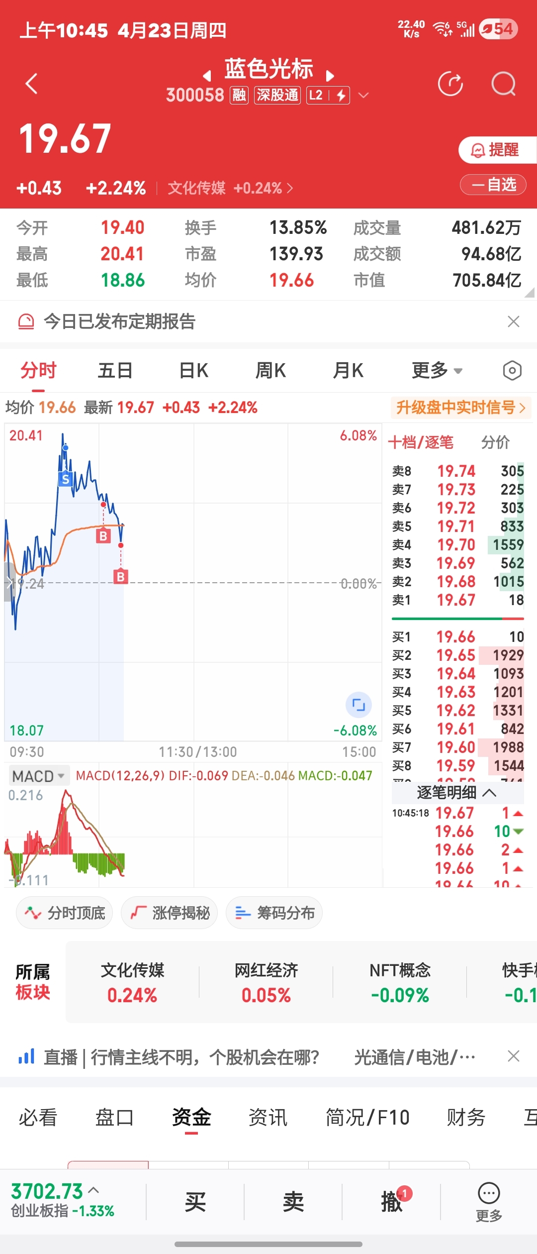 $蓝色光标(SZ300058)$ 今日做T长期看涨,第一季度业绩净利润虽然低,但公司业务范围广泛,和他的业务能力,我相信他会减少成本,迎接二季度收入。至于你们说什么出货不出货的,我不在乎,因为还挺看好这个票的。