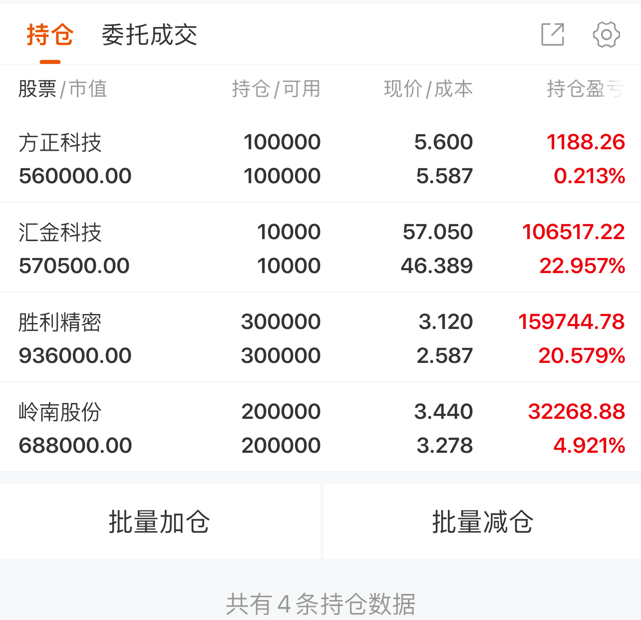 手中持仓