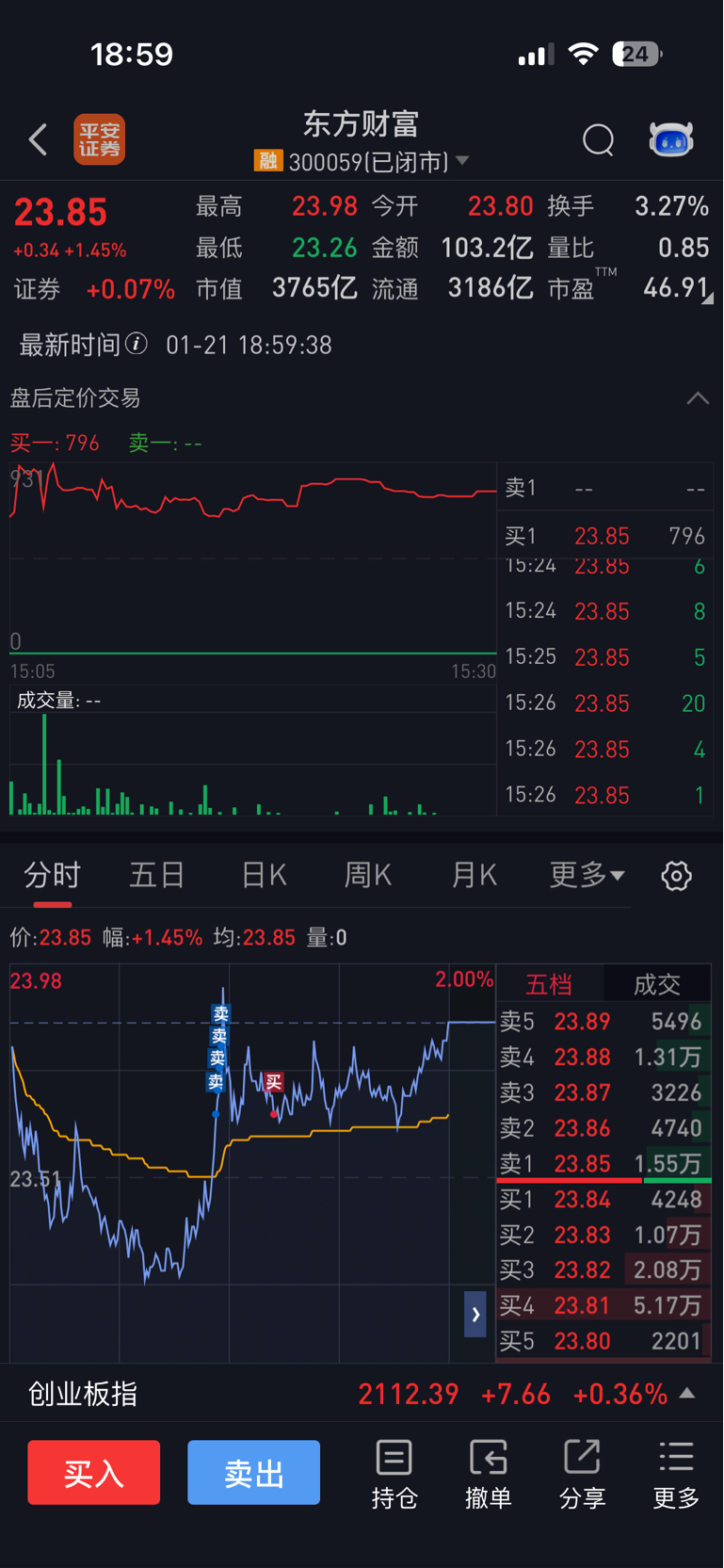 $东方财富(SZ300059)$ 今天好险做了一毛钱的T,接下我就算不能大涨也会稳住!