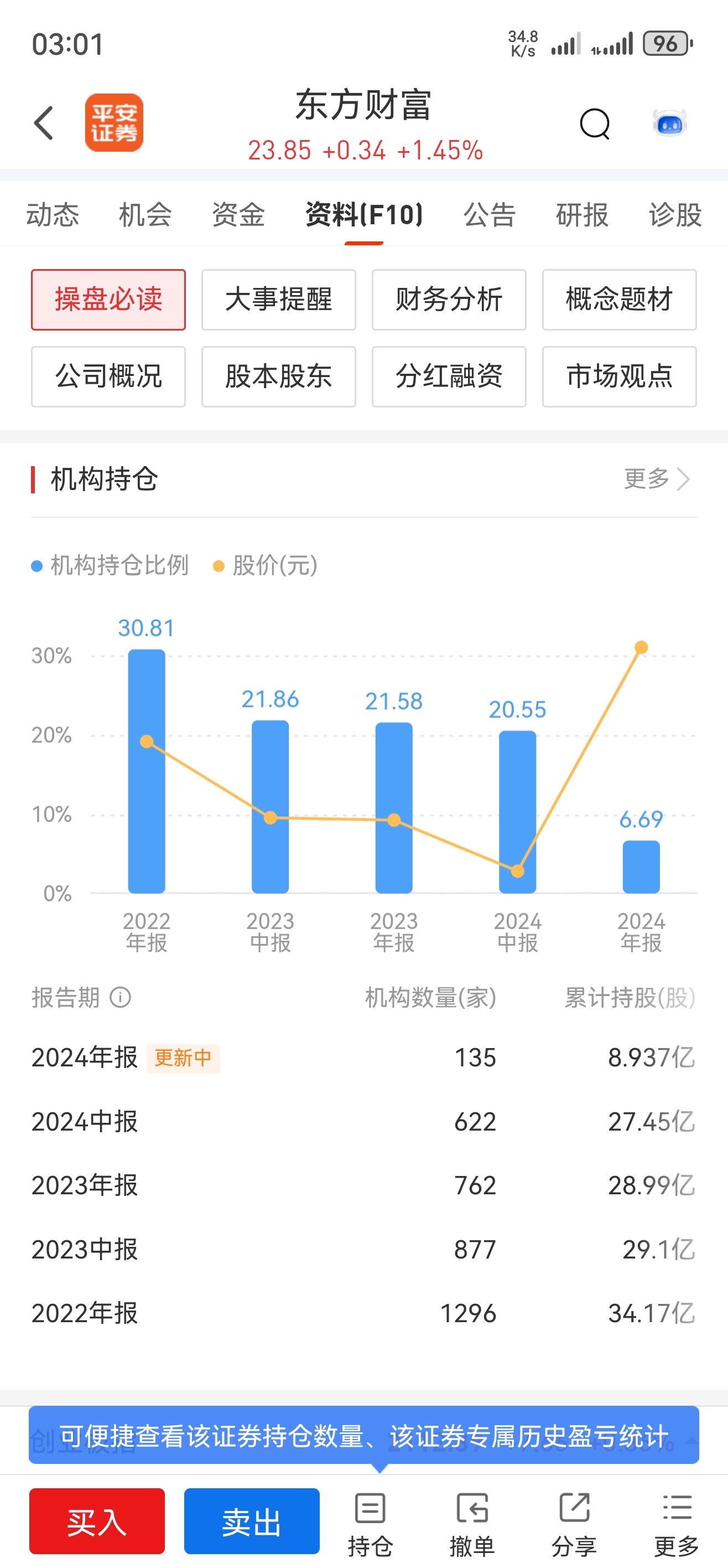 $东方财富(SZ300059)$ 机构持仓越来越少了 是好事还是坏事?
